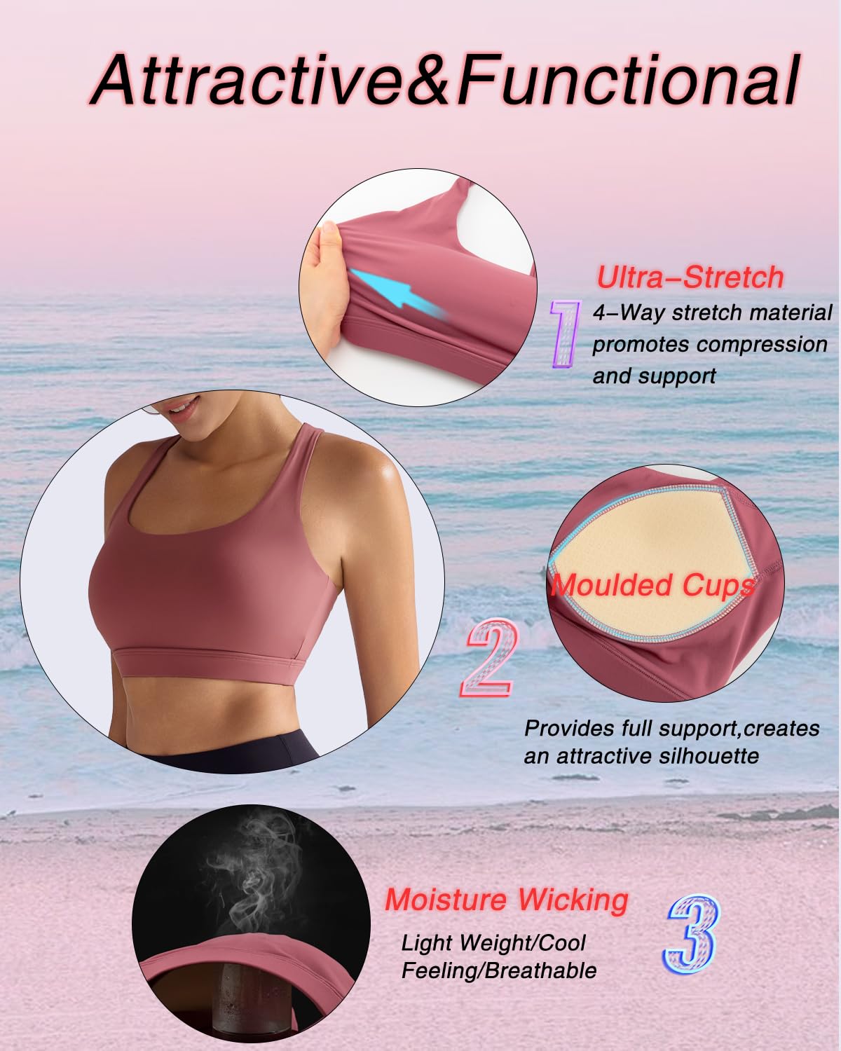 ✅ 【SWEAT OUT IN STYLE! 】: Made from a flexible four-way stretch fabric that supports your body as you move. Enjoy the freedom of movement as the open back styles aim to keep you comfy and cool while you bring on the heat! Running sports bras for women with wide waist band for that support we all need!