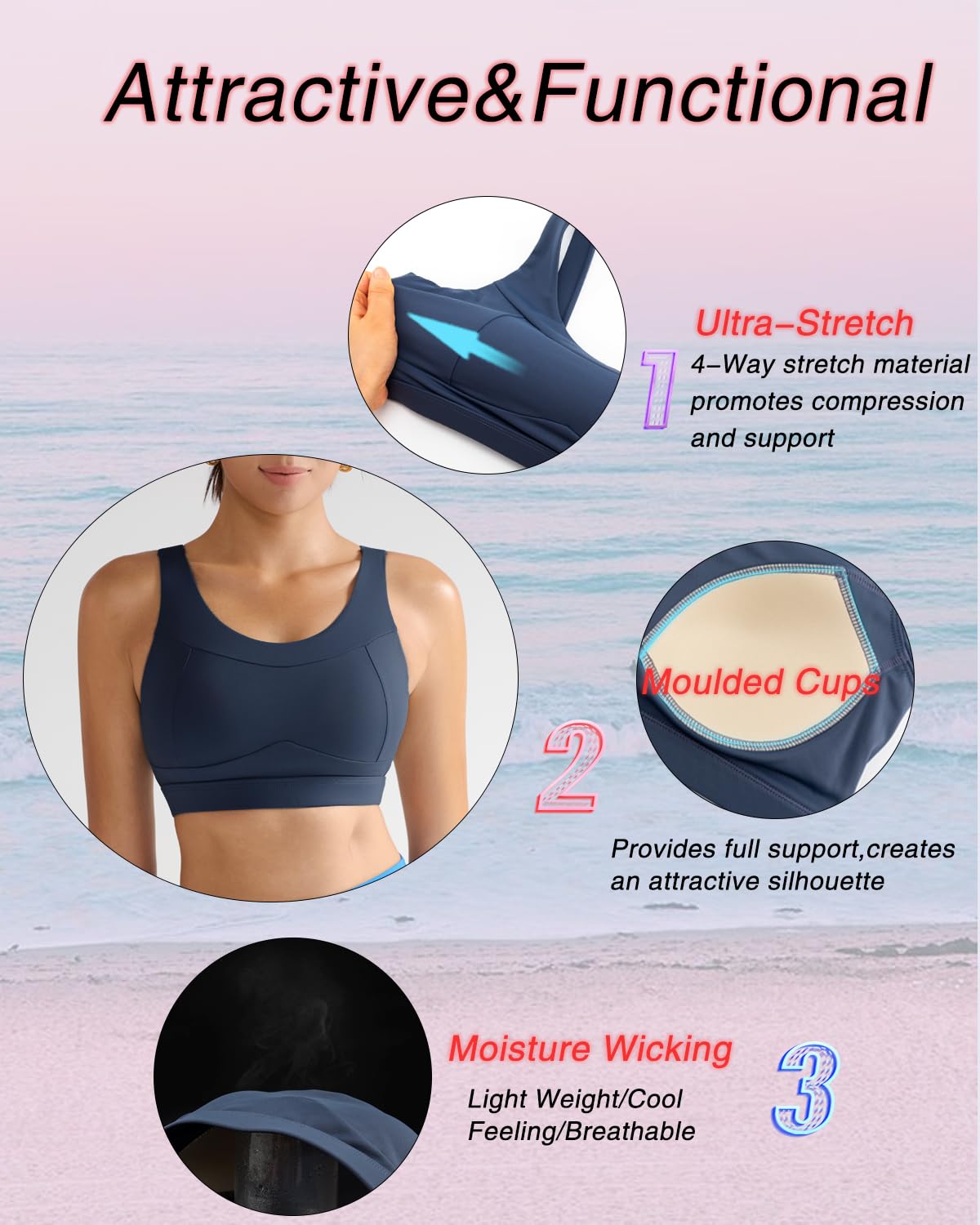 ✅ 【HIGH IMPACT SPORTS BRA】:Intense workouts call for extra support. RUNNING GIRL Sports Bra for Women is strategically designed to deliver support and tailored for high impact activities like running, jumping and full body workouts. Featuring moulded cups and stretch straps for the perfect fit. Everything will stay in place and you can fully concentrate on aiming high!