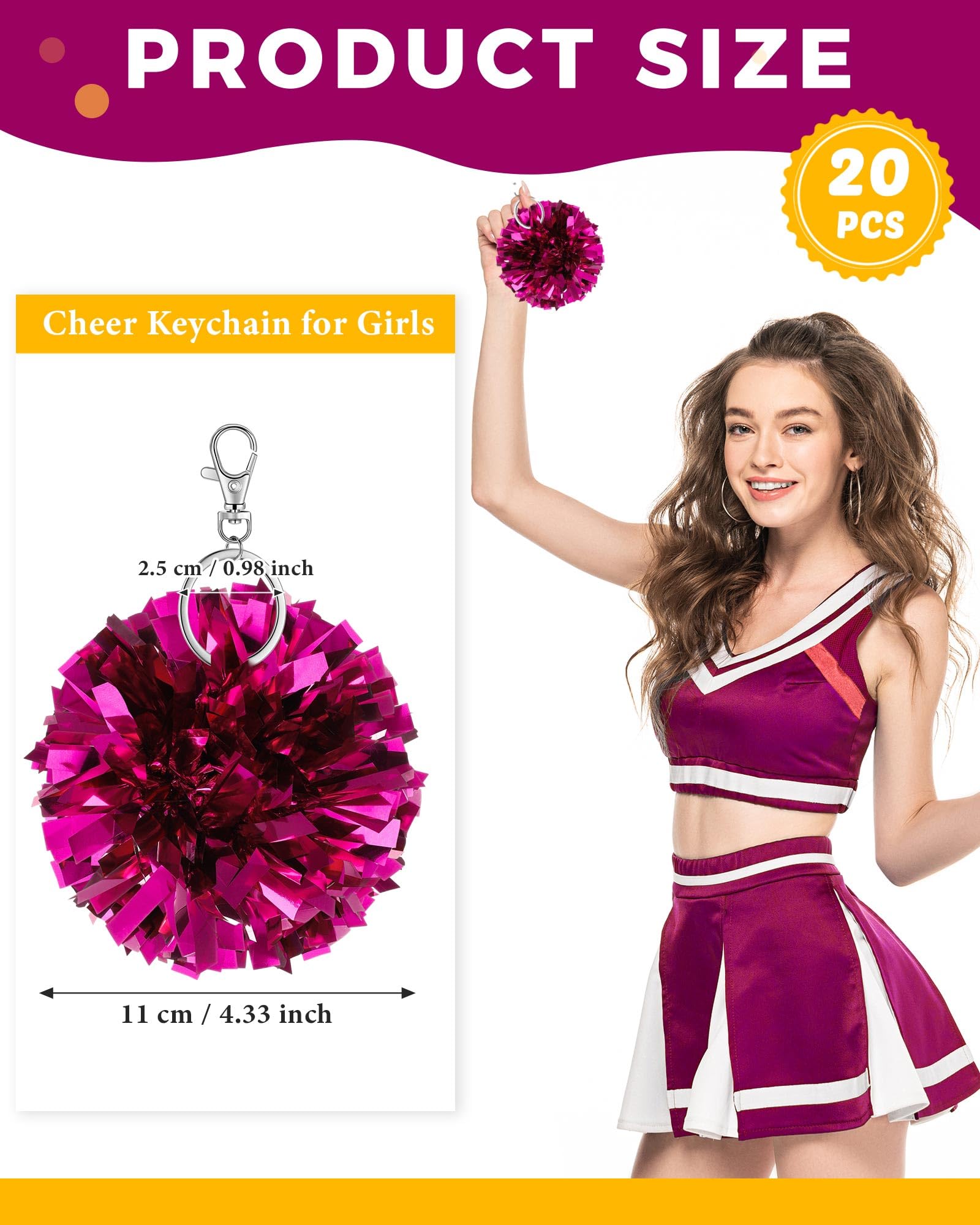 Generous Quantity and Versatile Use: this package includes 20 cheer pom pom keychains, they are not only practical but also symbolic of cheerleading; Ideal as party favors, competition rewards, or to celebrate team spirit, they meet various group needs