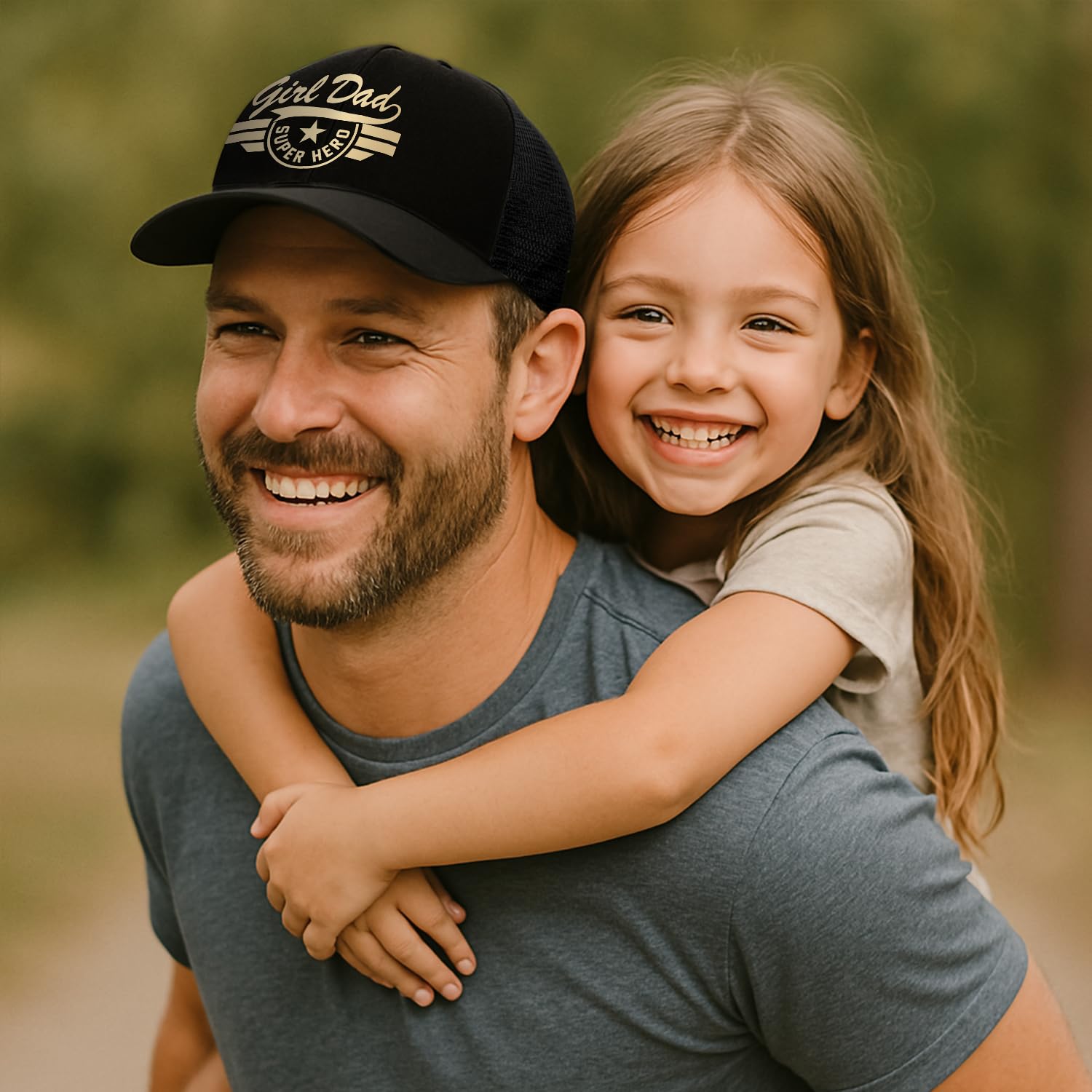 Meaningful Dad Birthday Gifts From Daughter - This trucker hat features a vintage design that reads "Girl Dad - Super Hero" honoring the dedication and hard work of dads in raising their daughters.