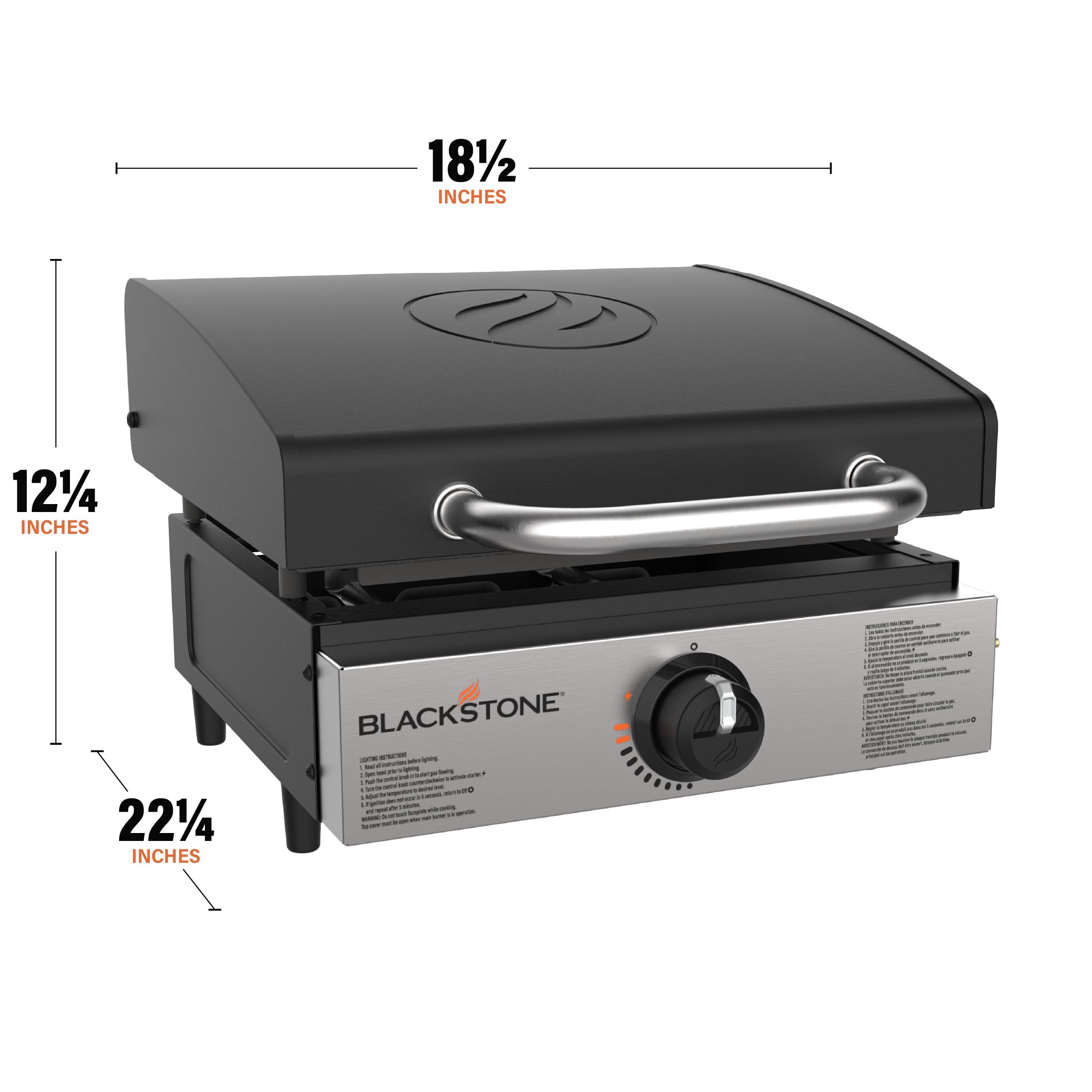Cook Whatever You Want, Wherever You Want With Blackstone Portable Griddle Whether you are enjoying family BBQ sessions in the backyard or hiking in the woods, our gas top griddle allows you to cook delicious meals on-the-go. The compact size and functional design of our countertop griddle is ideal for your next campout, beach blast, picnicking, road trip, or a fun-filled meal on your patio. Features at a glance: • On countertop or not, our flat griddle stays still: The height-adjustable rubber feet offer enhanced stability on uneven surfaces. From grassy hills to muddy terrain, our table top griddle stays stable so you can cook confidently • Portable: Measuring just 17.5" L x 8.5" H x 18" W inches, our camping griddle has a small footprint. Compact and lightweight it is an ideal companion for your outdoor adventures • Spacious cooking surface: Don't be fooled by its small size! Mighty yet powerful, this flat top griddle fits 9 burgers/9 pancakes/12 eggs and feeds up to two to four people • Convenient fuel source: Our propane griddle uses a 1 lb. Propane bottle (not included) or a 20 lb. propane tank with the propane adapter hose with regulator (not included) • No more waiting: Fast heat-up with 12,000 BTUs means you can start cooking almost instantly • Ideal for everything yum! Burgers, pancakes, hot dogs, steaks, stir fry, bacon, and more. This stovetop griddle can be used for breakfast, dinner and everything in between Who likes cleaning when outdoors, or indoors or anywhere! You will love how easy it is to clean our RV propane griddle. It is equipped with an integrated drip catching tray that collects all the oils and juices from your meat and prevents it from ruining your countertop. To clean the griddle, all you need to do is slide the tray out, clean it and wipe the griddle cooking surface with a wet towel. That's it. You are all ready to watch the starry night enjoying your hamburgers.