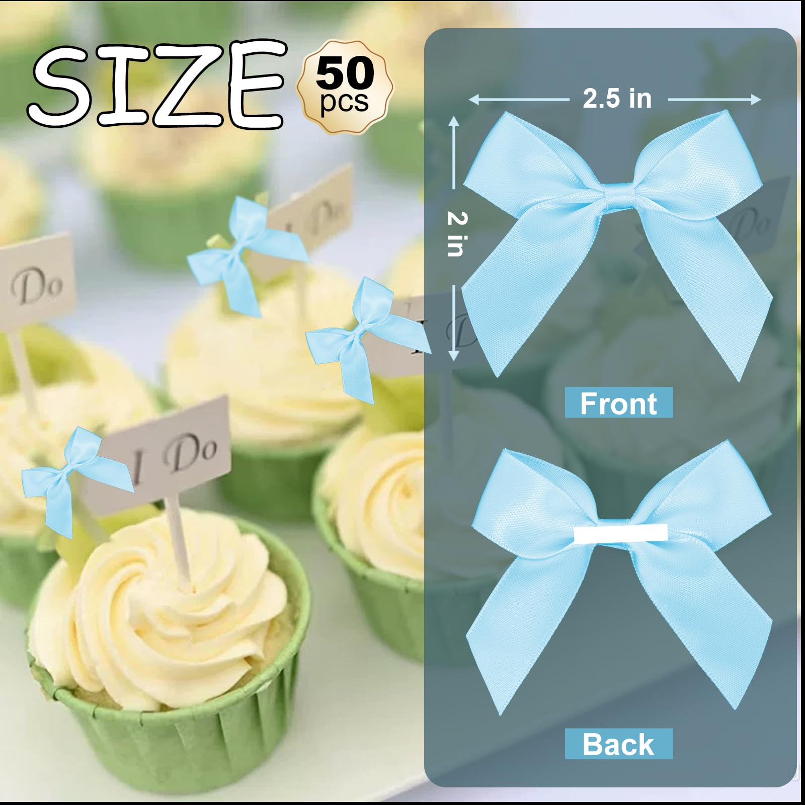 High-Quality Satin Material: Our 50 PCS Satin Ribbon Bows are crafted from premium satin, ensuring a luxurious look and feel,This set will easily meet your various needs for decoration or DIY projects. It also saves time on making the bow yourself. perfect for adding elegance to any occasion whether it's a birthday, Christmas, or wedding.