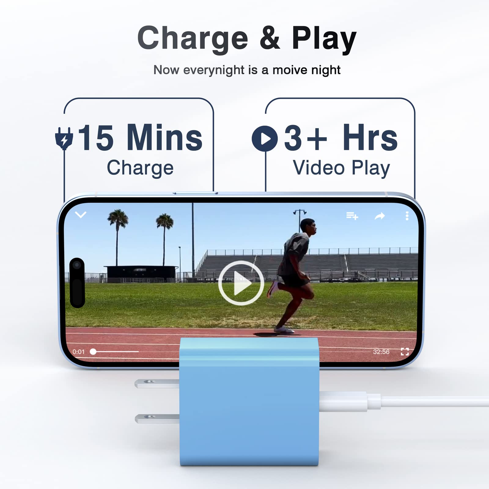2-Pack Dual Port Fast Charging: Offers fast and efficient charging up to 3X faster than a 5W charger. Charge your iPhone 16 up to 50% capacity in just 30 minutes with the original cable. Cable not included, only 2 Chargers