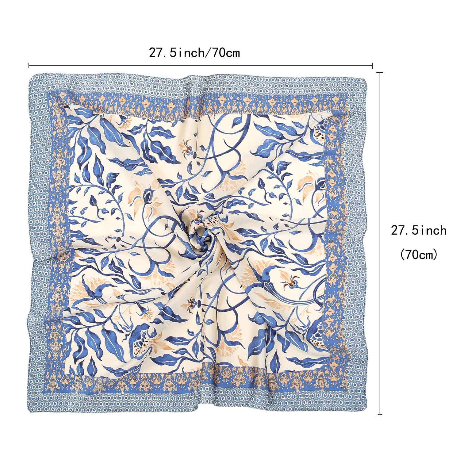 Size of the square scarf is 27.5'' x 27.5'', which can be used as a hair scarf, scarf top, neck scarf, hair wrapping at night, pirate head scarf on Halloween, also can be used for hat and handbag decoration.