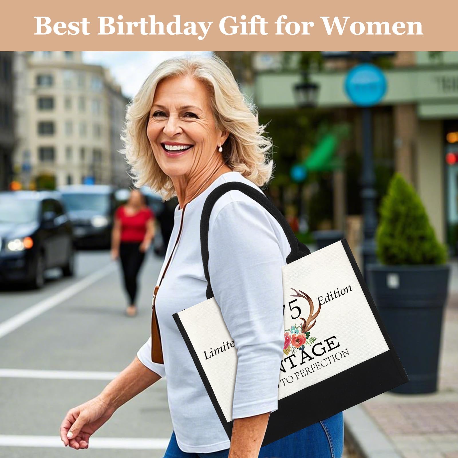 Unique 50th Birthday Gifts for Women: Our "Limited 1975 Edition" printed on both sides of this bag makes it a unique memento of her birth year. With a vintage - inspired design featuring a regal crown and natural antler motif, adds a touch of elegance and nostalgia. Our tote bags are vibrant, long-lasting, and fade-resistant, even after multiple washes and uses. Best birthday gift for best friends, sisters, mom, daughter,coworkers turning 50