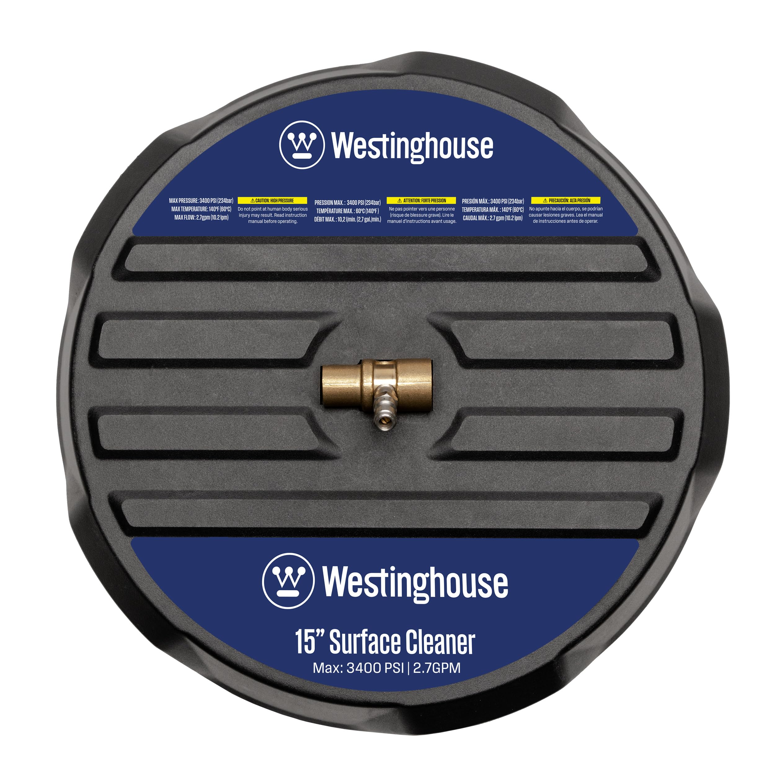 The Westinghouse 15” pressure washer surface cleaner attachment is intended for cleaning various surface materials like brick, wood, concrete, and more. Both beginners and professionals will enjoy this easy to use and reliable attachment in their homes or at their businesses. The 15” cleaning area will make quick work of large, flat areas both horizontally and vertically. Rated up to 3400 PSI and minimum of 2500 PSI, this surface cleaner is powerful enough to eliminate stuck-on dirt without harming the surface material. Compatible for use on most gas pressure washers with a ¼” quick connect fitting making it an easy addition to any pressure washer’s toolkit. Both light and durable, this attachment can fit neatly inside the home or on a vehicle–making it perfect for either commercial or personal use. The Westinghouse brand is known for providing quality products to Americans for over 100 years, so this attachment includes a 180-day customer warranty to certify its lasting quality.