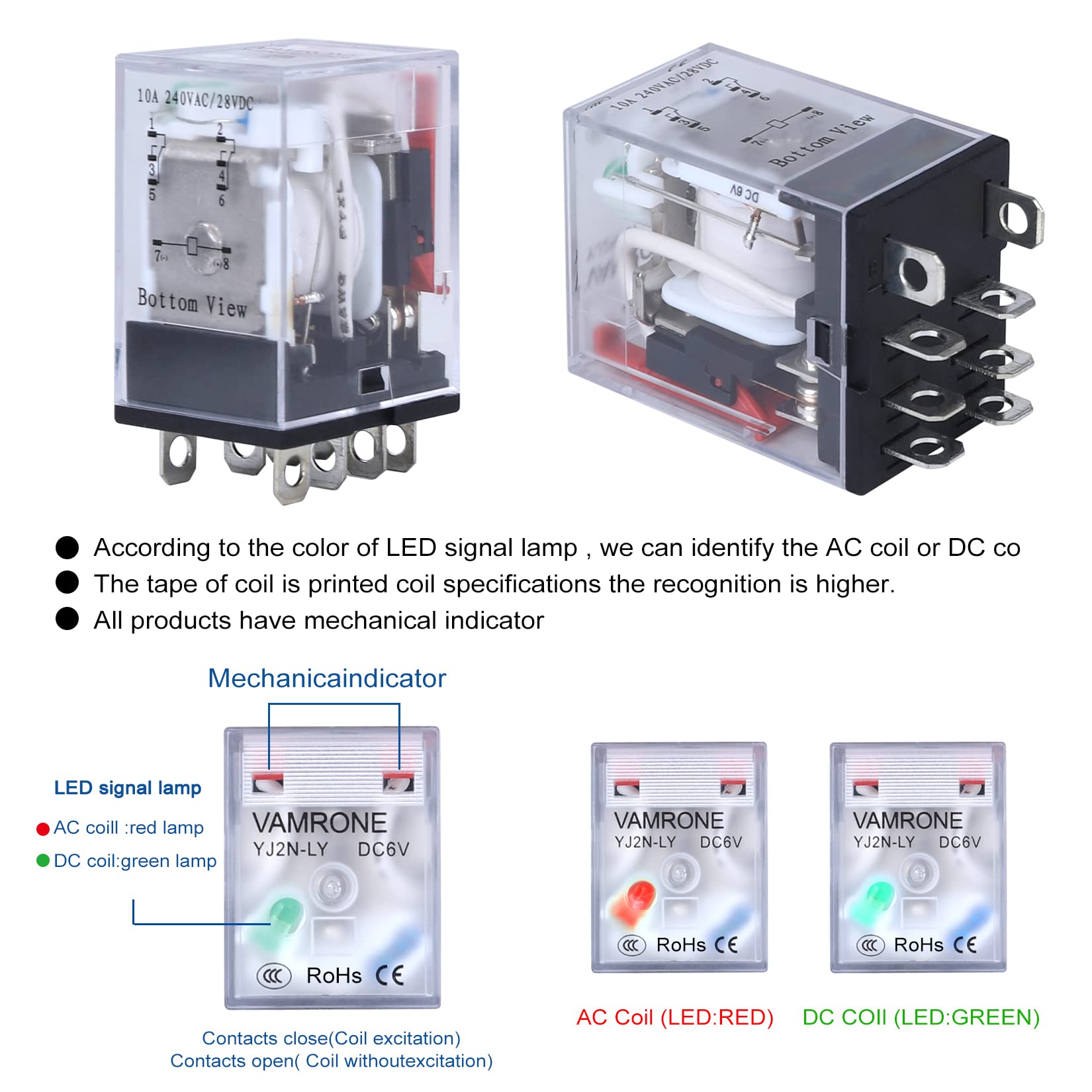 LED signal lamp : It can judge the AC or DC coil, and judge whether the coil is energized