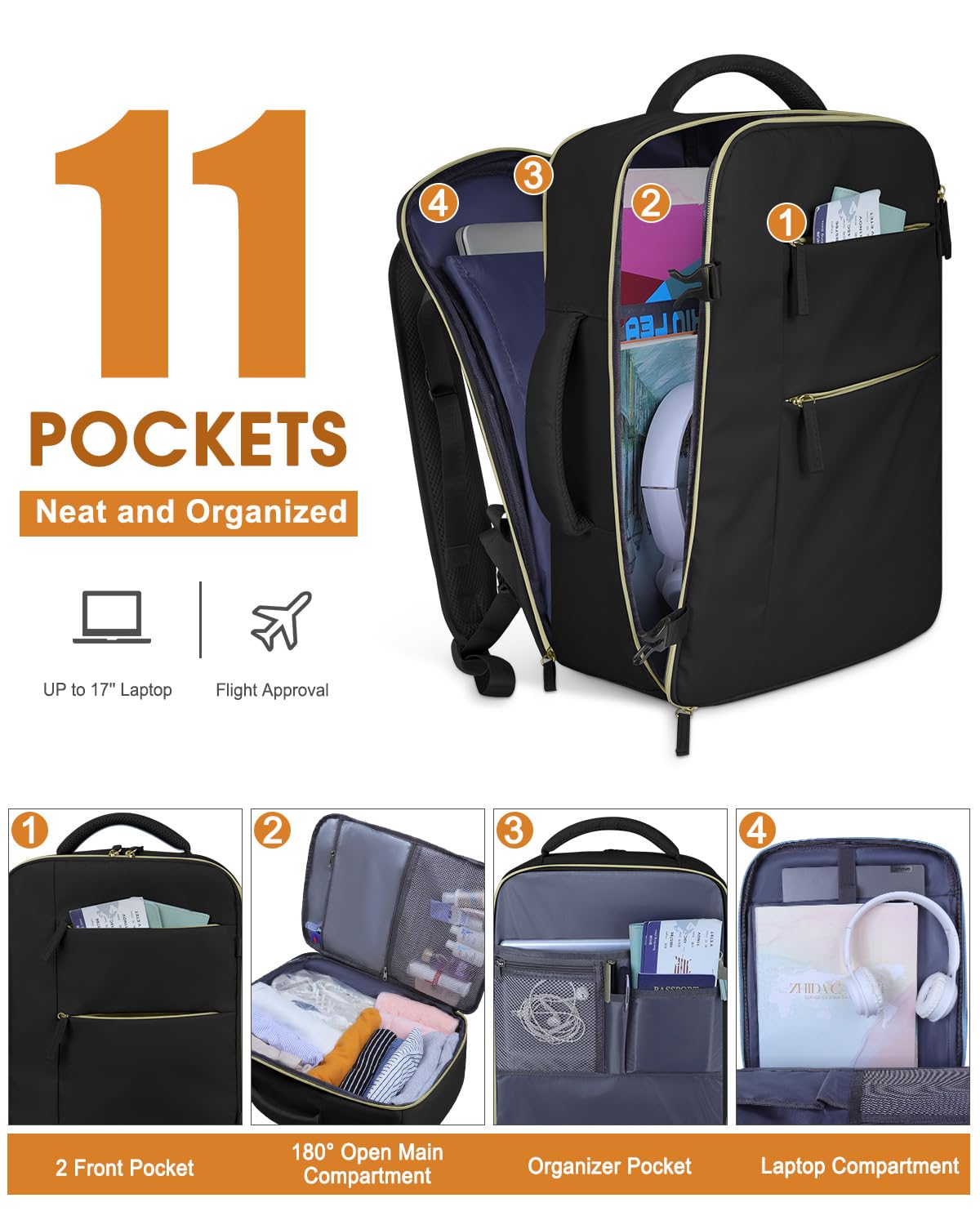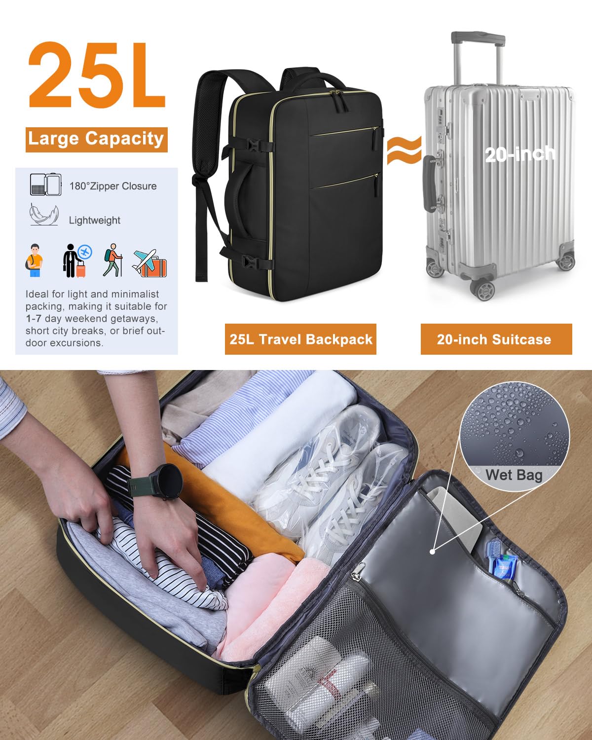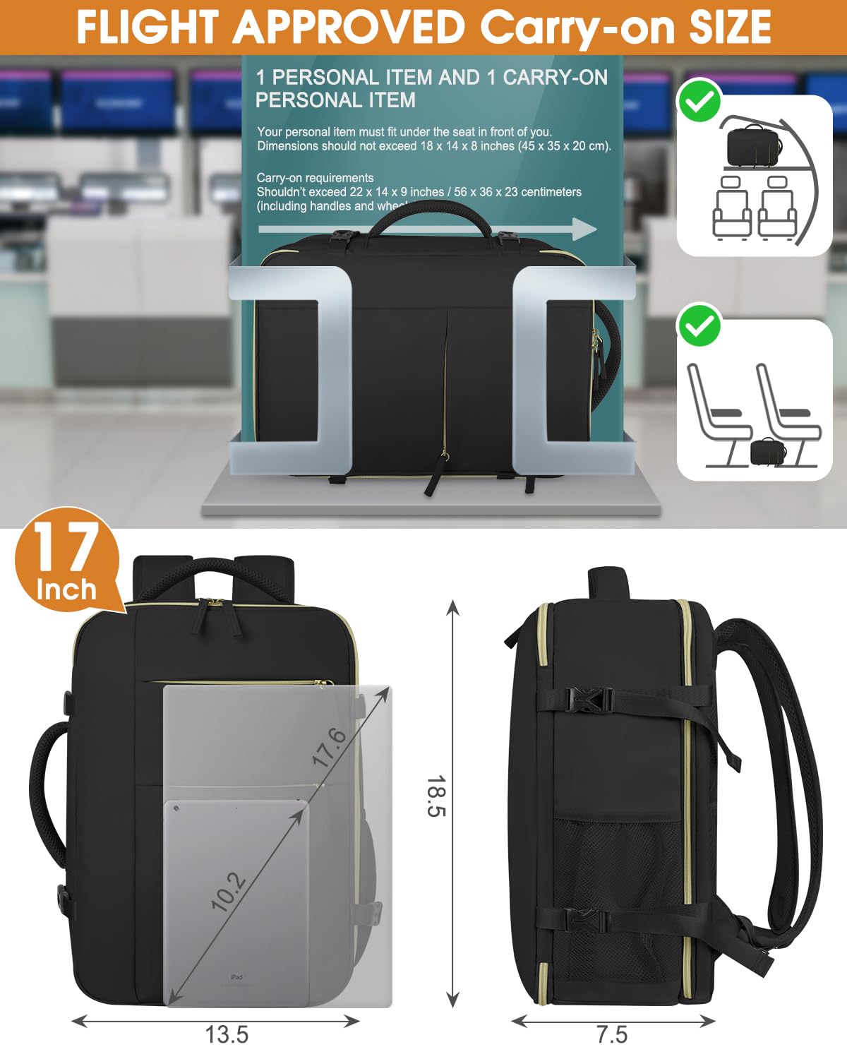 Comfortable Carry On Backpack:Featuring a breathable mesh back panel and padded shoulder straps designed to effectively alleviate pressure on your shoulders and neck. 13.5*7.5*18.5 inch comply with the majority of airline regulations for carry on bags, ensuring hassle-free travel