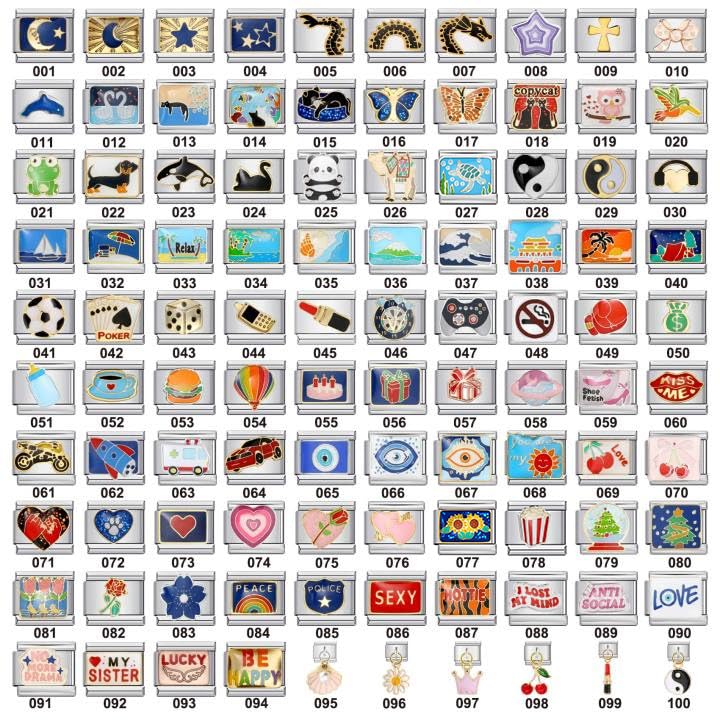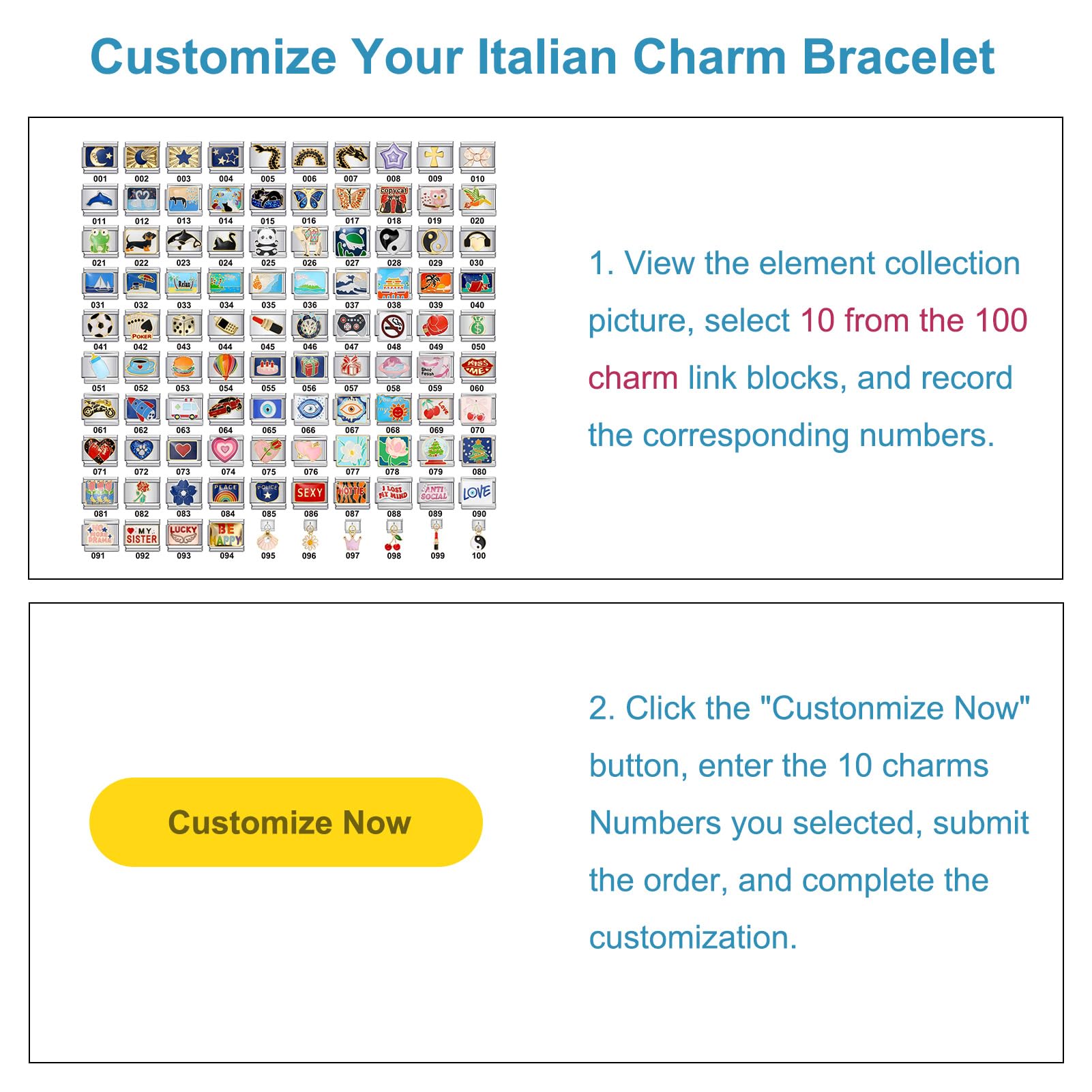 Personalized Charm Selection - Choose 10 charms from 100 unique designs, including moon, stars, animals, landscapes, hearts, and flowers, to create a truly personalized Italian charm bracelet.