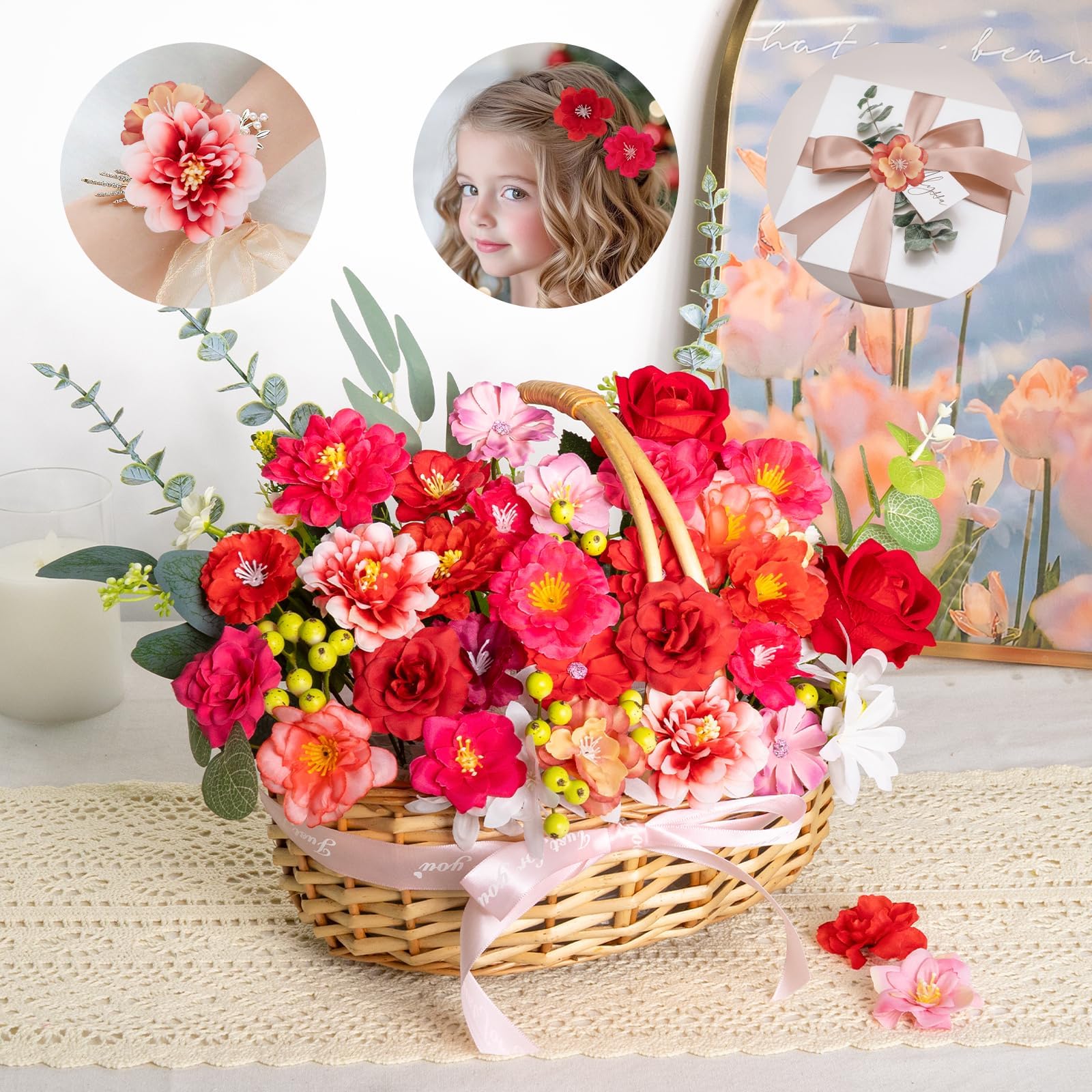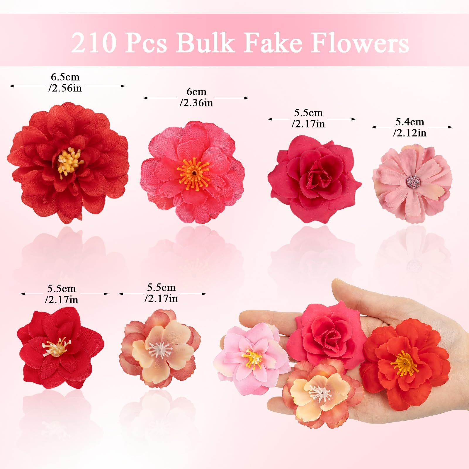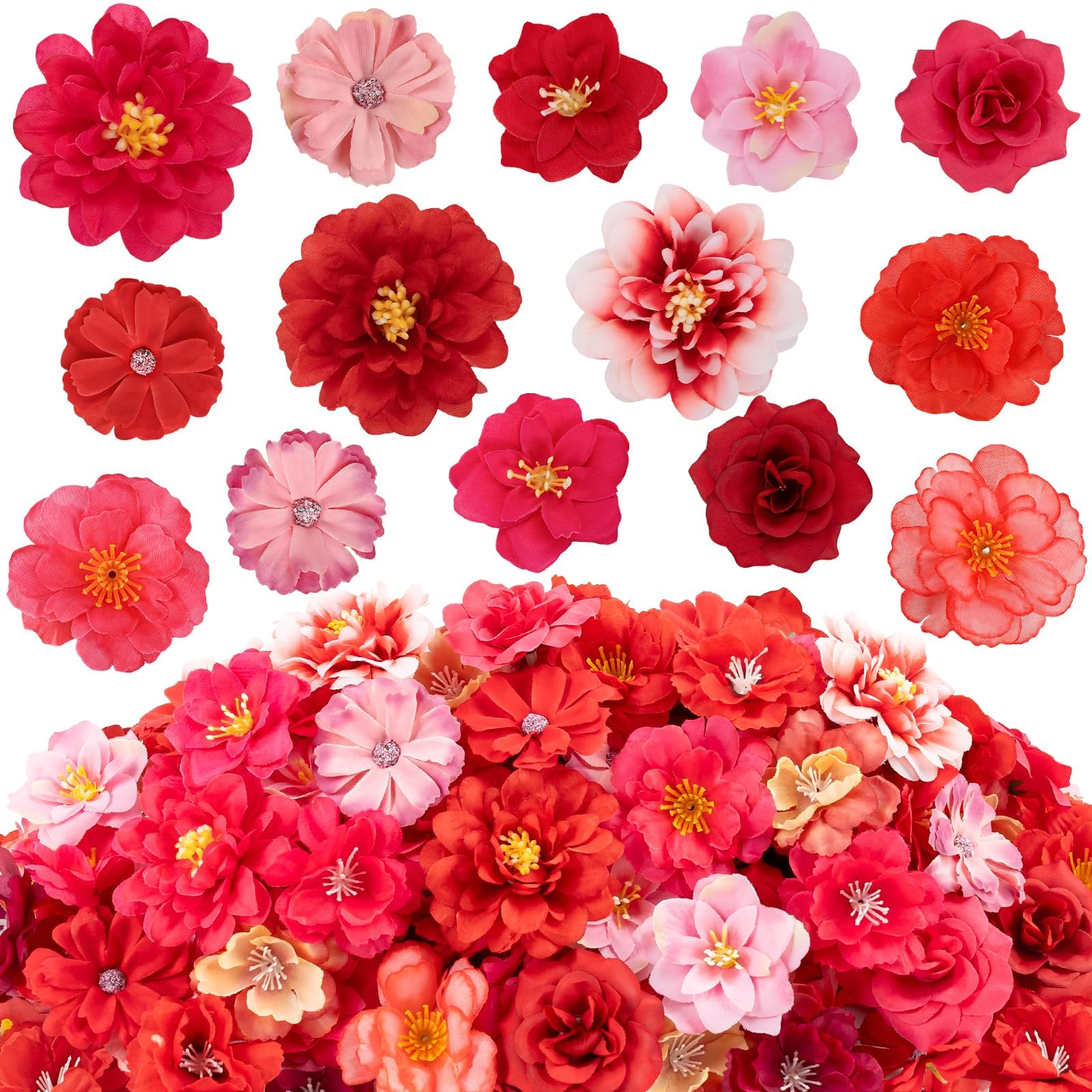 Perfect for DIY & Events: Ideal for DIY crafts, school activities, artists, photographers, and event planners, these faux flowers can be sewn, glued, or pinned onto cakes, clothing, wreaths, hair accessories, headbands, graduation caps, leis, gift boxes, vases, floral arrangements and backdrops—perfect for birthdays, weddings, fashion party, baby showers, graduations, and large event setups, reducing decoration cost for recurring projects
