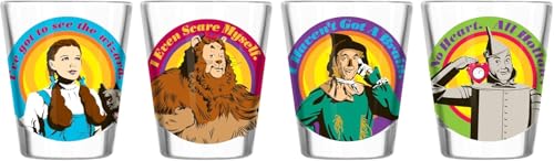 Step into the magical Land of Oz with this nostalgic mini glass set! Mini glass set features four iconic Wizard of Oz characters including Dororthy, Scarecrow, the Tin Man, and Cowardly Lion. Each character is featured on their own glass surrounded by a colorful circular design. Each mini glass features a quote specific to the character featured as well. Mini glass set comes with 4 glasses, 1.5 ounces each. Great to enjoy drinks with friends, or as a Wizard of Oz collector’s item. These glasses are NOT microwave or dishwasher safe. HAND WASH ONLY. Looking for the perfect gift? Novelty mini glass set is unique, colorful, and features iconic characters. Great for birthdays and other holidays! Take a dive into the fictional world with Silver Buffalo! Silver Buffalo provides fans with official merchandise from their favorite characters. Working alongside licensors and brands, we create unique and imaginative products which are designed with great care and detail. Silver Buffalo aims to connect fans to their favorite cartoon characters, superheroes, movies, tv-series, and more. Celebrate your fandom!
