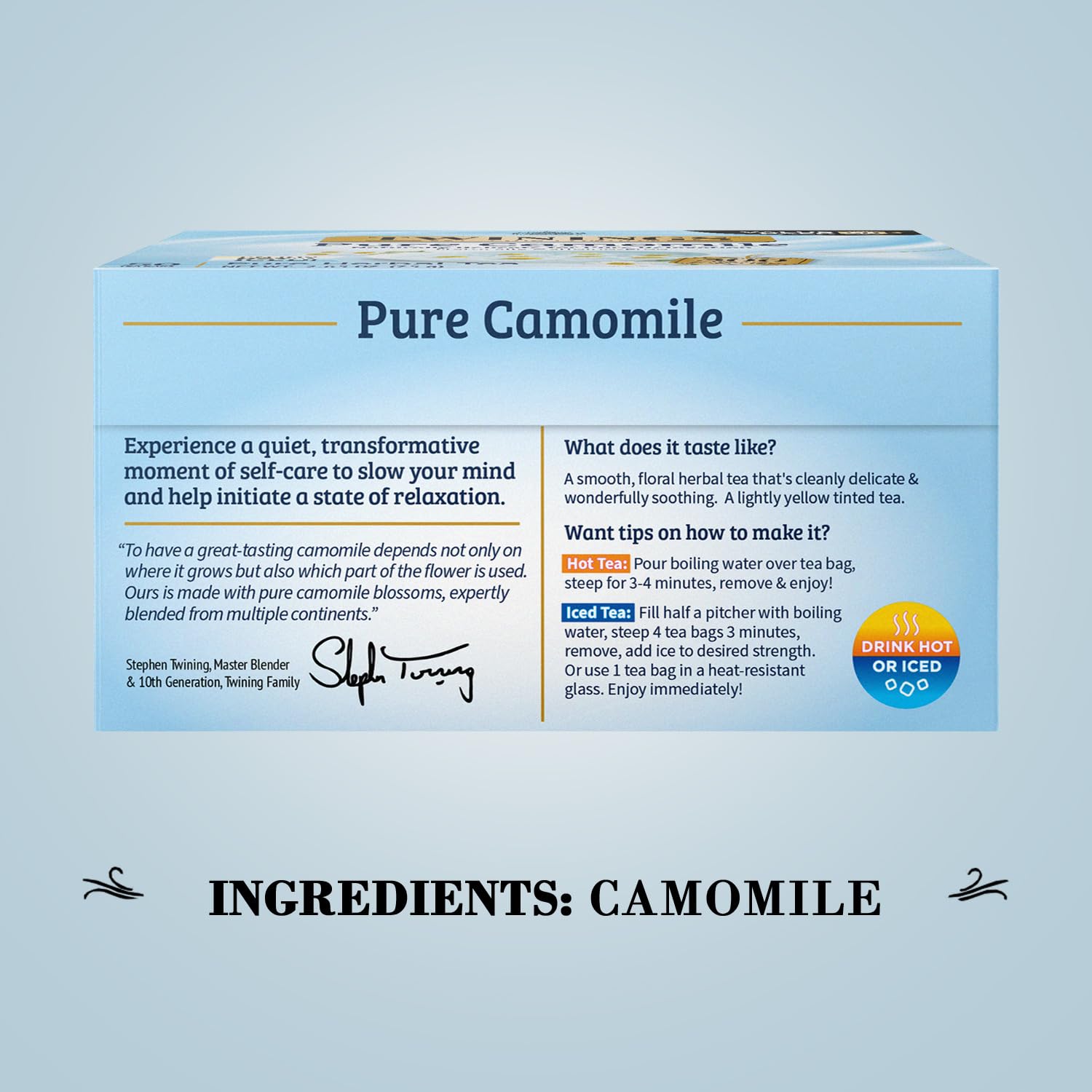 A SOOTHING HERBAL TEA: Enjoy a delicious and relaxing cup of Pure Camomile, a non-caffeinated herbal tea made by Twinings, any time of day
