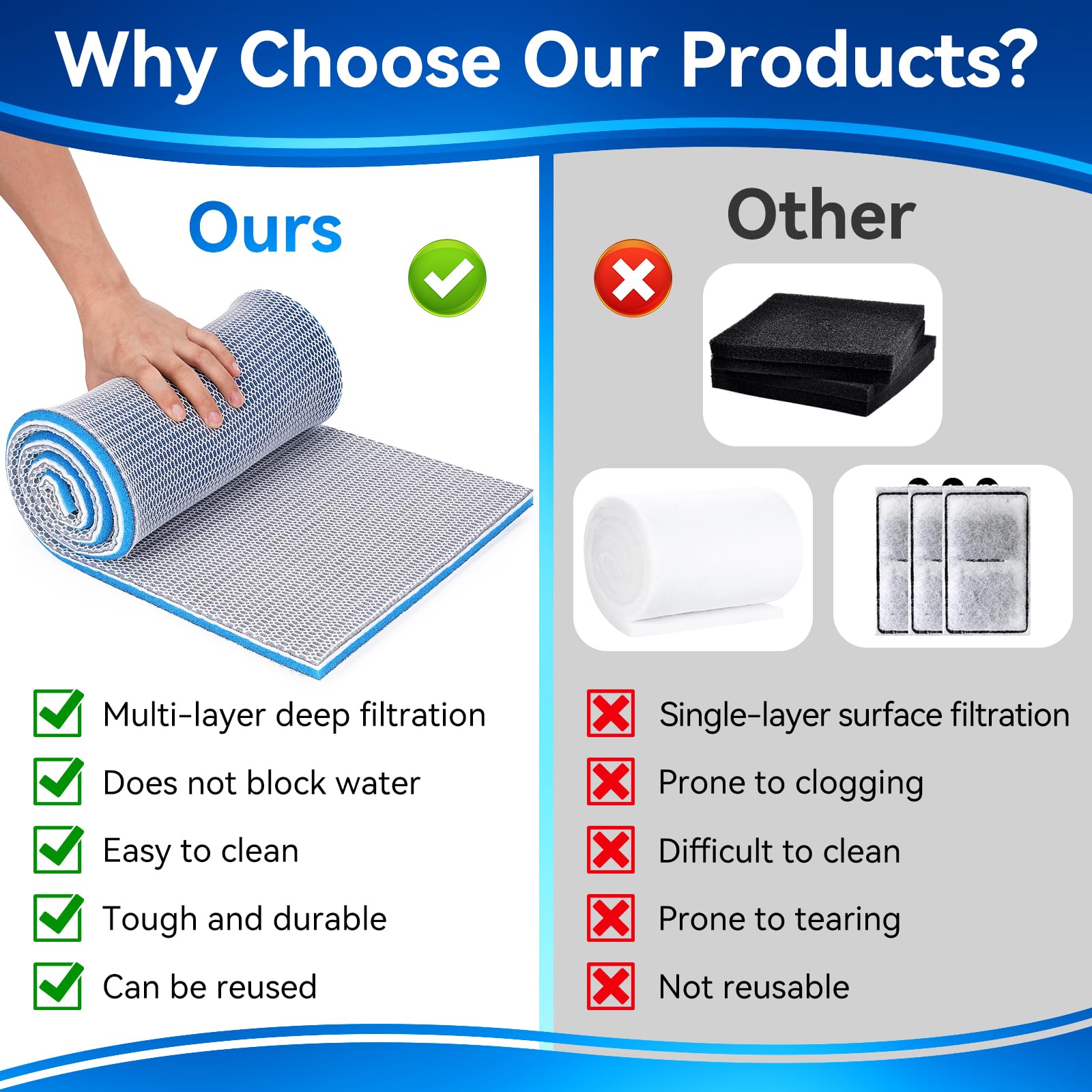 ✅Reusable: This filter sponge can be reused multiple times after proper cleaning. In the long run, it can not only help you save money, but also provide consistent and reliable filtration performance throughout the usage period.