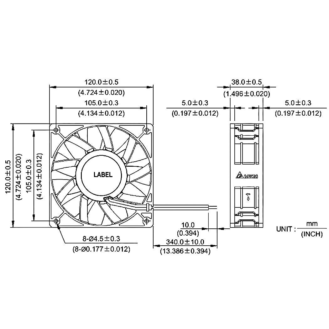 Dimensions: 120x120x38 mm ( 4.72x4.72x1.5 in ) | Rated Voltage :12V 2.0 A| Noise: 60 dBA(Max) | Airflow: 230 CFM | Power: 22.8W | Speed: 5300 RPM | Air Pressure (In H2O): 1.17 ; 1 Piece fan include fan grill and mounting screws nuts
