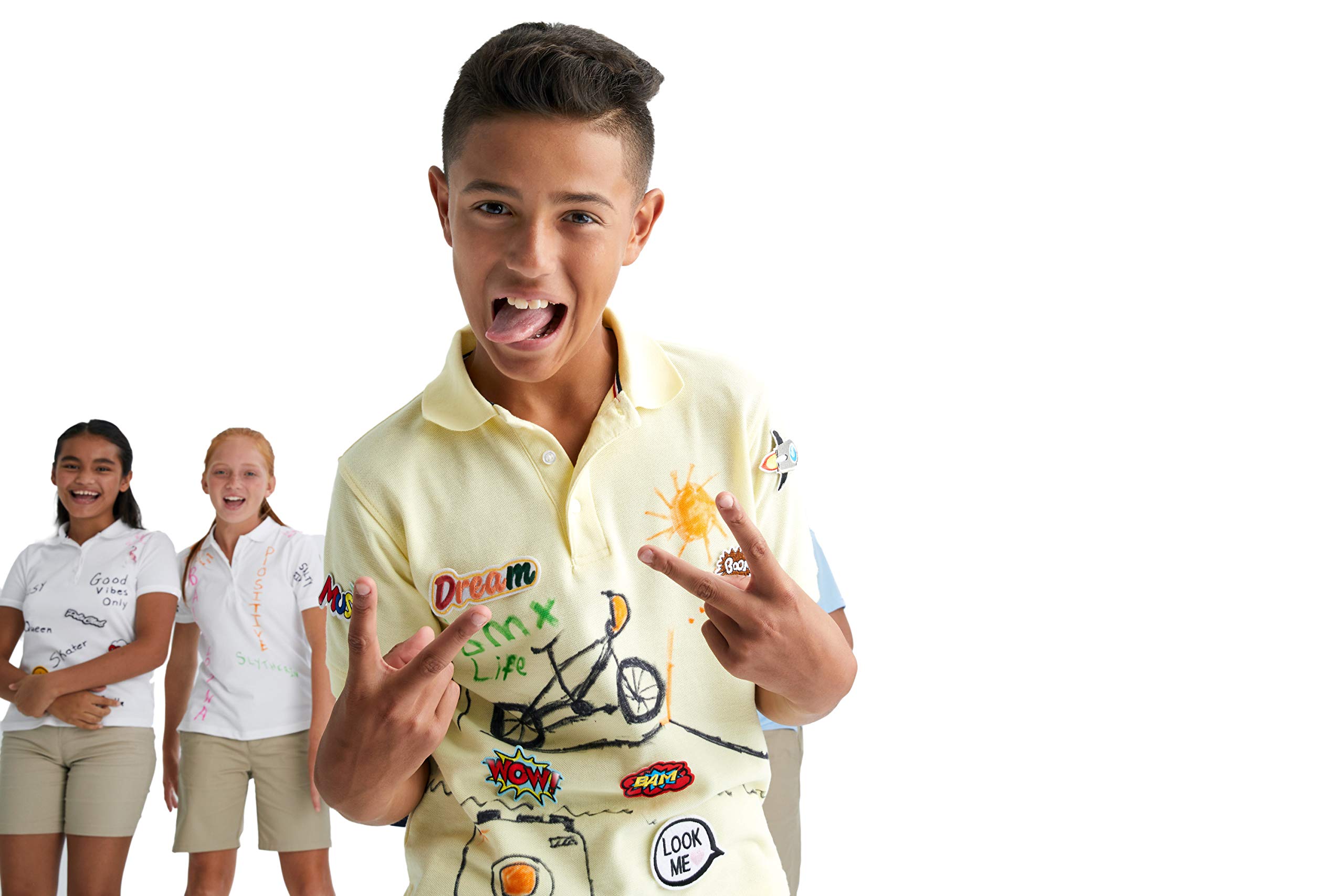 Description This short-sleeve polo is polished enough for the classroom yet comfy enough for the playground. Shrink-and fade-resistant in a breathable soft piqué knit, the wider cut ensures a more comfortable fit.