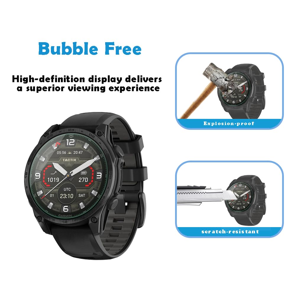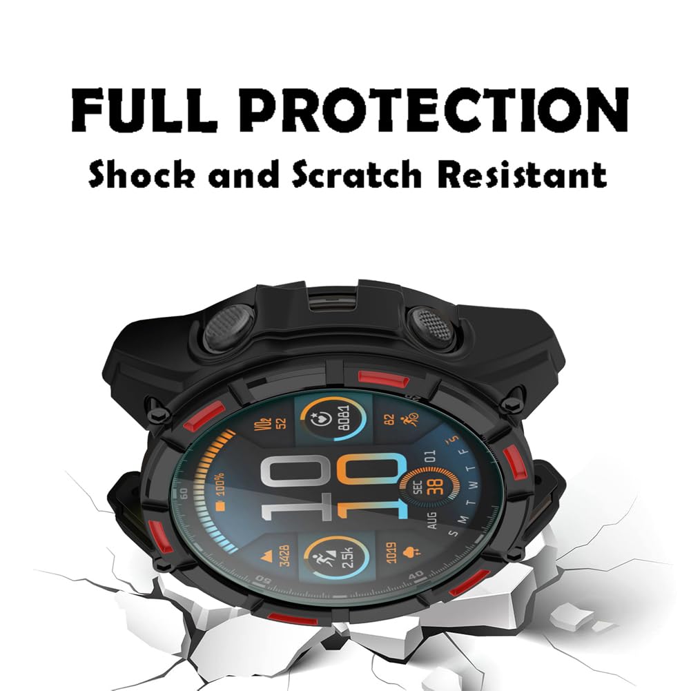 Compatible Models:Compatible with Garmin Tactix 8 AMOLED 51mm,(3 pcs) Tempered Glass Film and (1 pcs) Soft TPU Protective Case