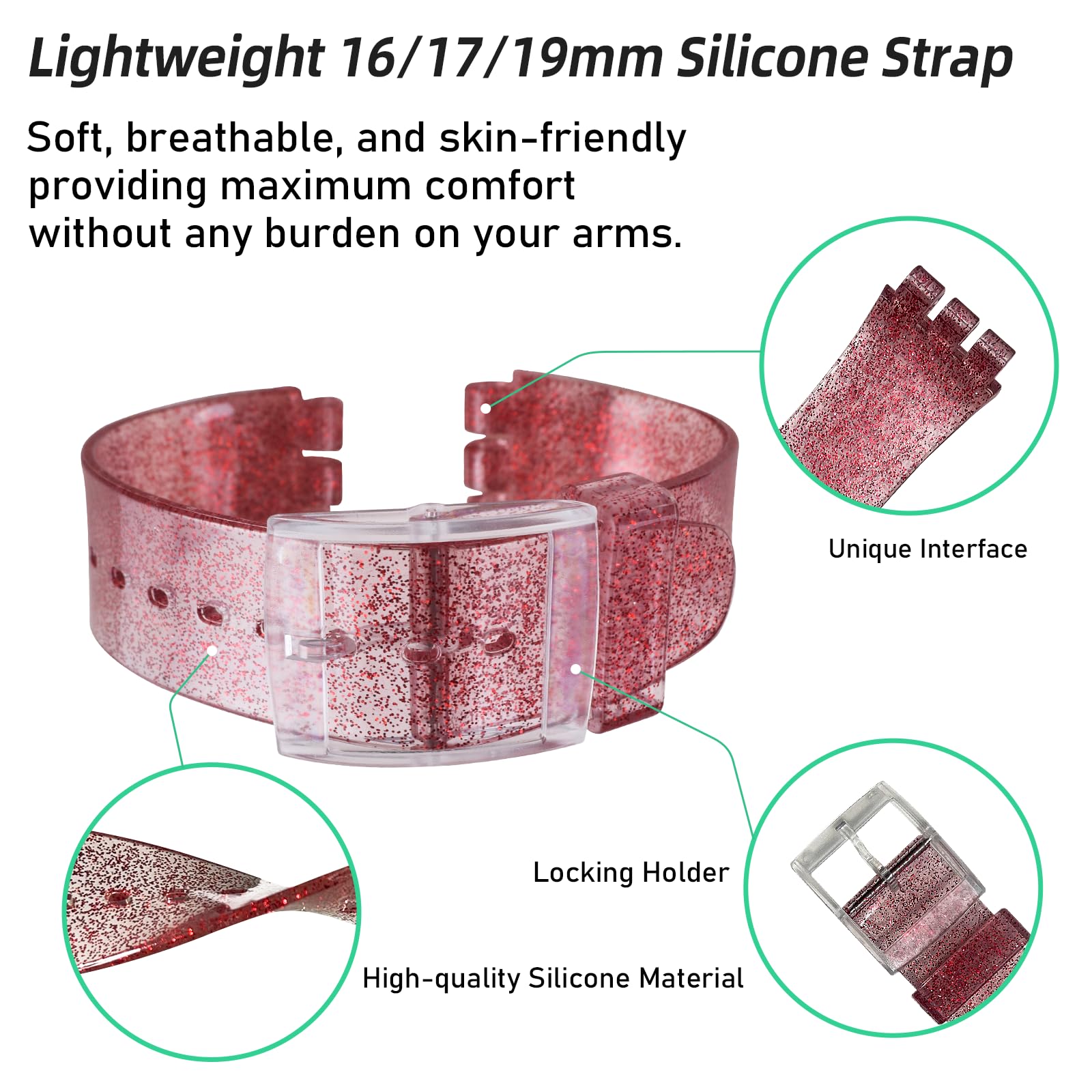 - Perfect fit for 16mm Skin Series Swatch Watch. Fit replacement plastic swatch bands - choose from original, fresh, retro, hip and creative styles.