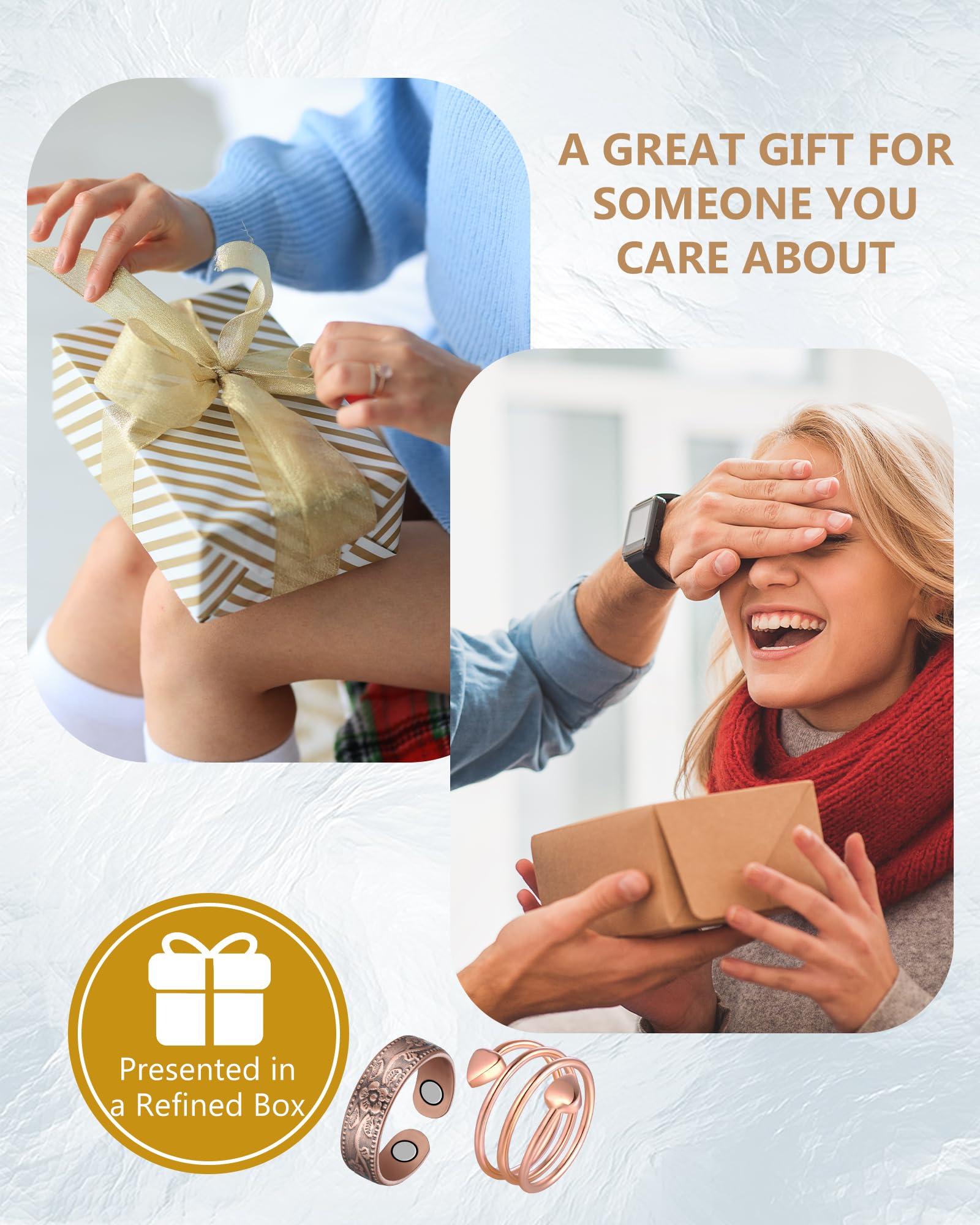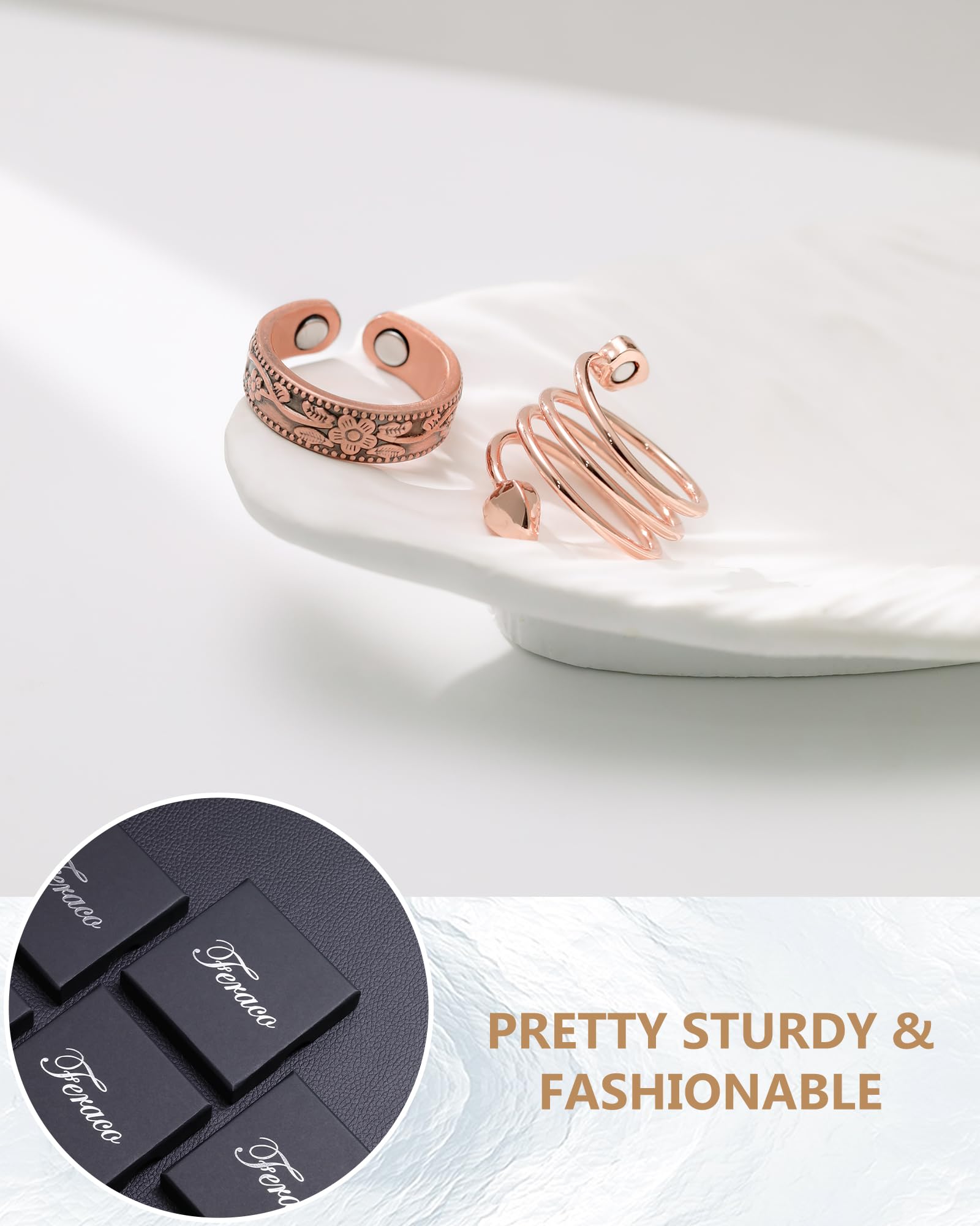 Description Feraco 2PCS Magnetic Copper Rings For Women,Valentine's Day Gifts For Women,99.99% Pure Copper Adjustable Thumb Ring.Keep away from All CHILDREN,Swallowed magnets can damage internal organs and have resulted in DEATH and SERIOUS INJURIES.