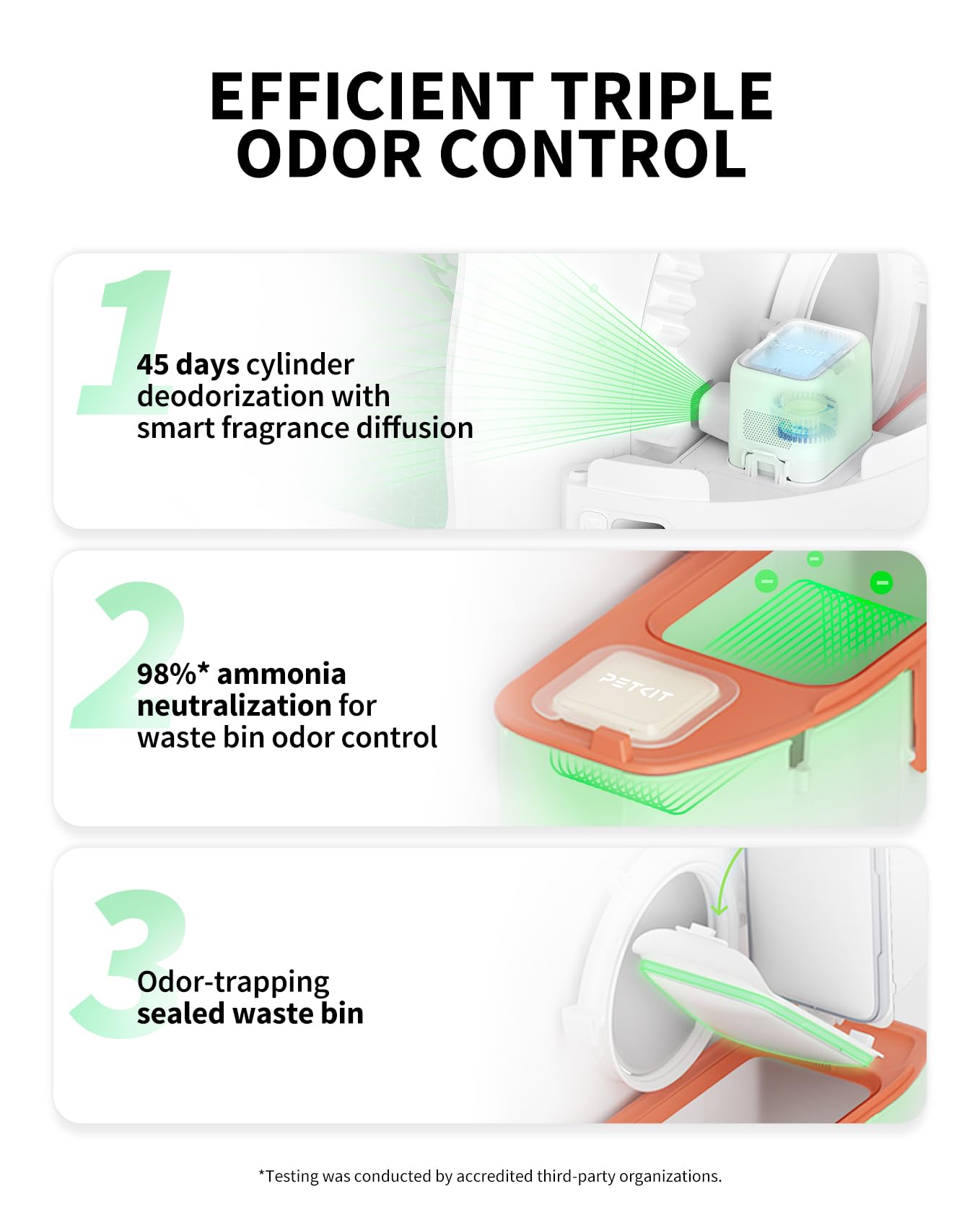 Effcient Triple Odor Removal: Automatic flap sealing door to isolate the spread of cat litter odor, with N50 2.0 and intelligent new N60, effective deodorization, even when standing next to the litter box, you will not smell the odor