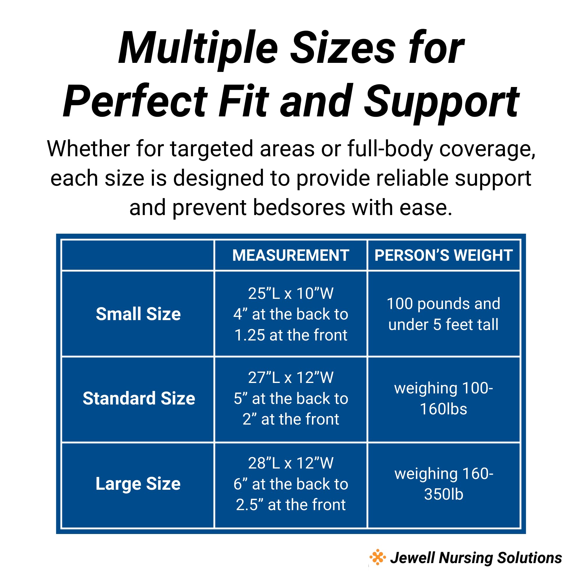 SMALL SIZE FOR COMPREHENSIVE SUPPORT - Measuring 24”L x 11”W and tapering from 4” at the back to 1.5” at the front, this small-size wedge is perfect for patients weighing less than 100lbs. Its contoured design offers more soft and gentle but still stable and effective pressure relief over critical areas, accommodating smaller and more frail body types and enhancing overall well-being by maintaining proper positioning and support.