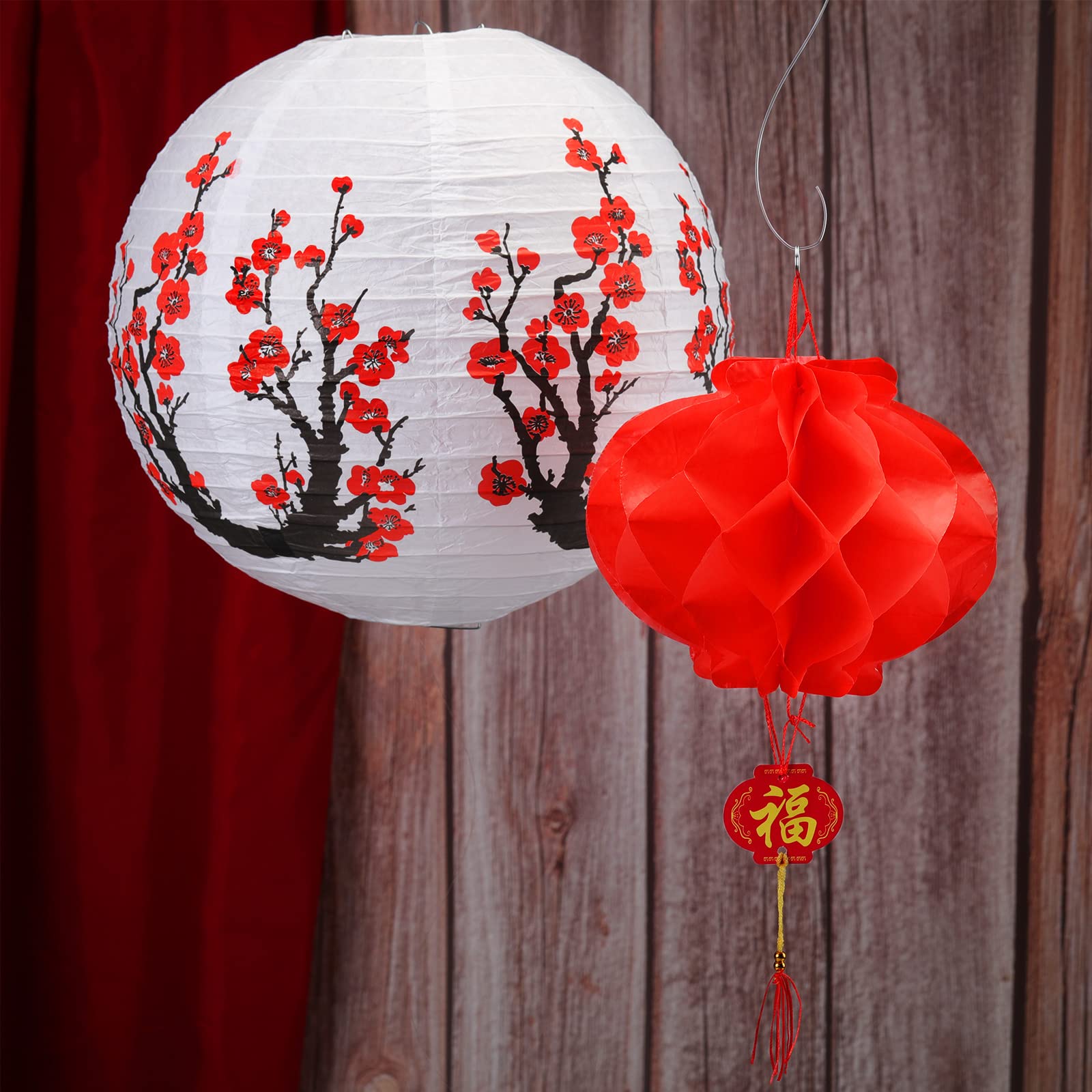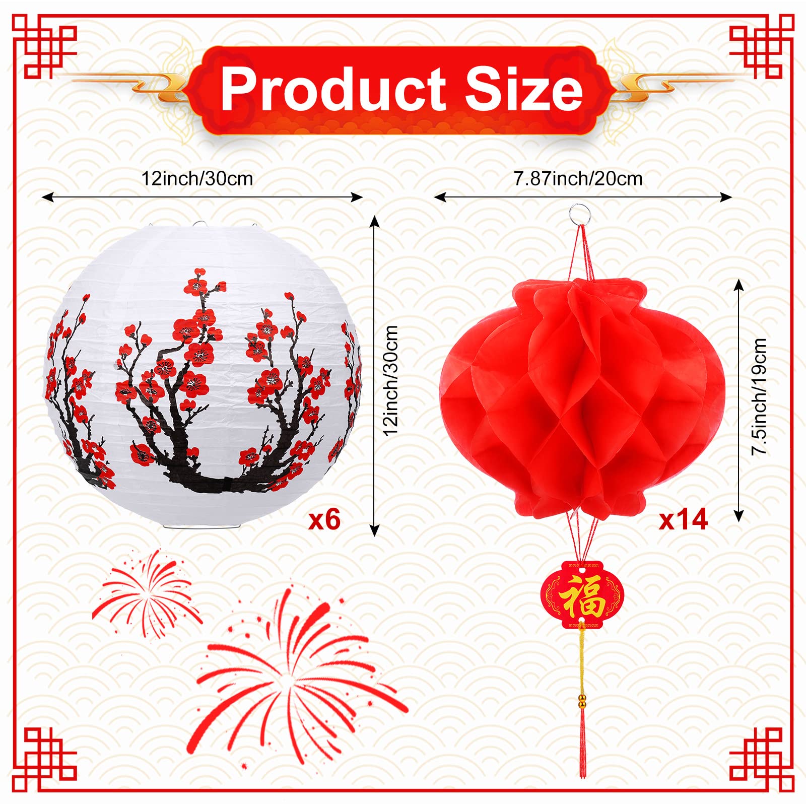 Chinese Japanese lantern set: you will get 6 cherry flower paper lanterns with a size of 12 inch, 14 Chinese red paper lanterns with a size of 7.87 inch, a total of 20 pieces, both are medium size; Note: the cherry flowers paper lantern does not contain string lights