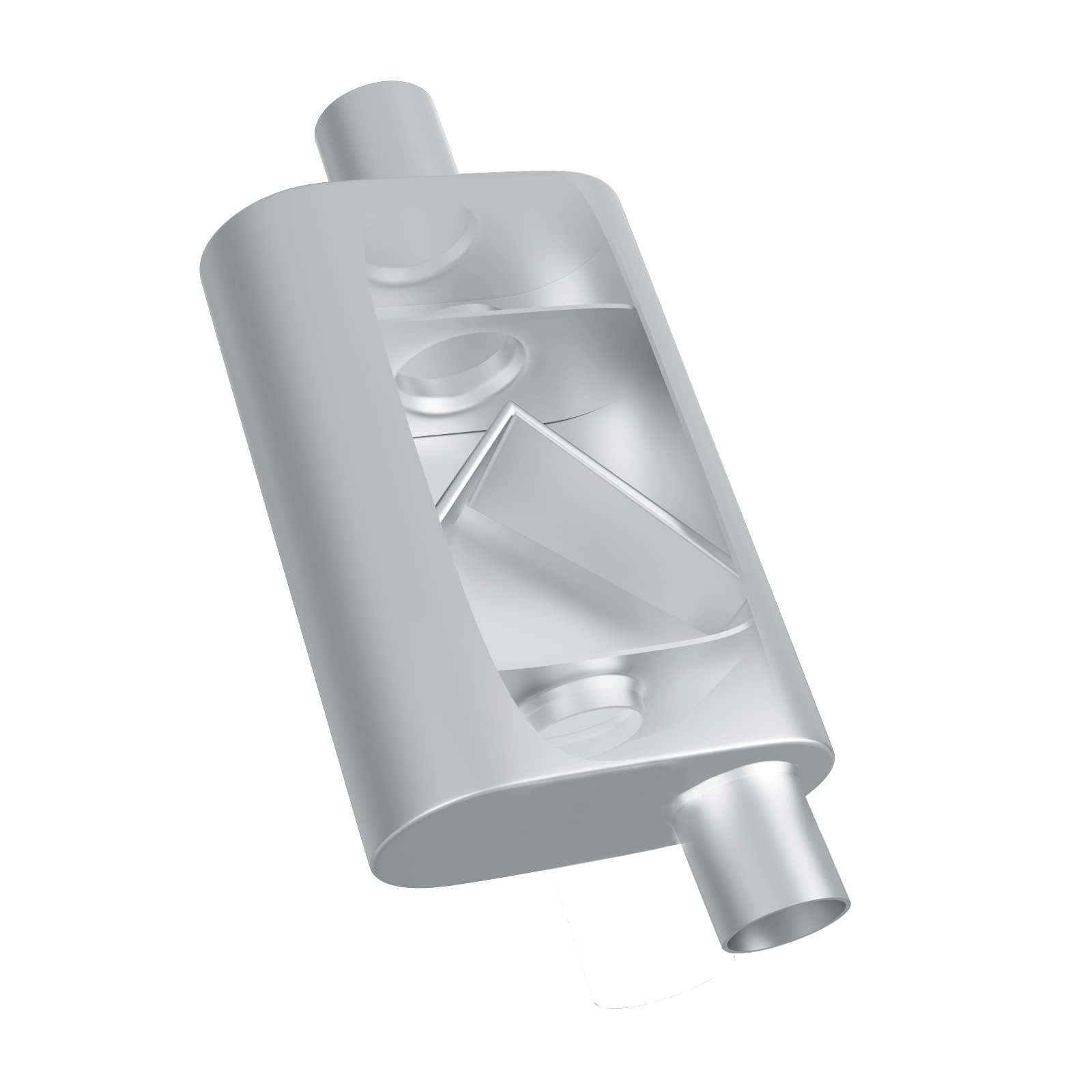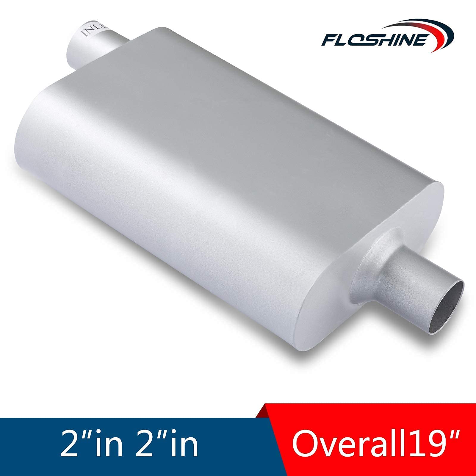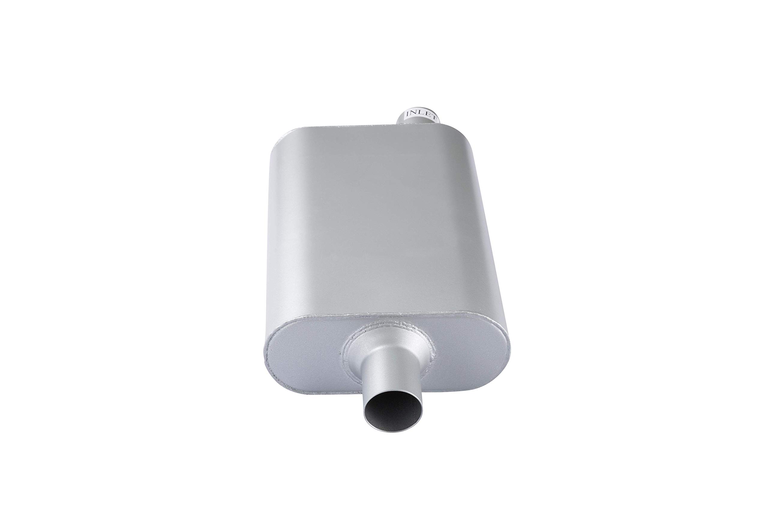 Performance Muffler size--2" inlet (ID) 2" outlet (ID) | Body Length: 13"| Overall Length: 17"| Body Height: 4" | Body Width: 10"