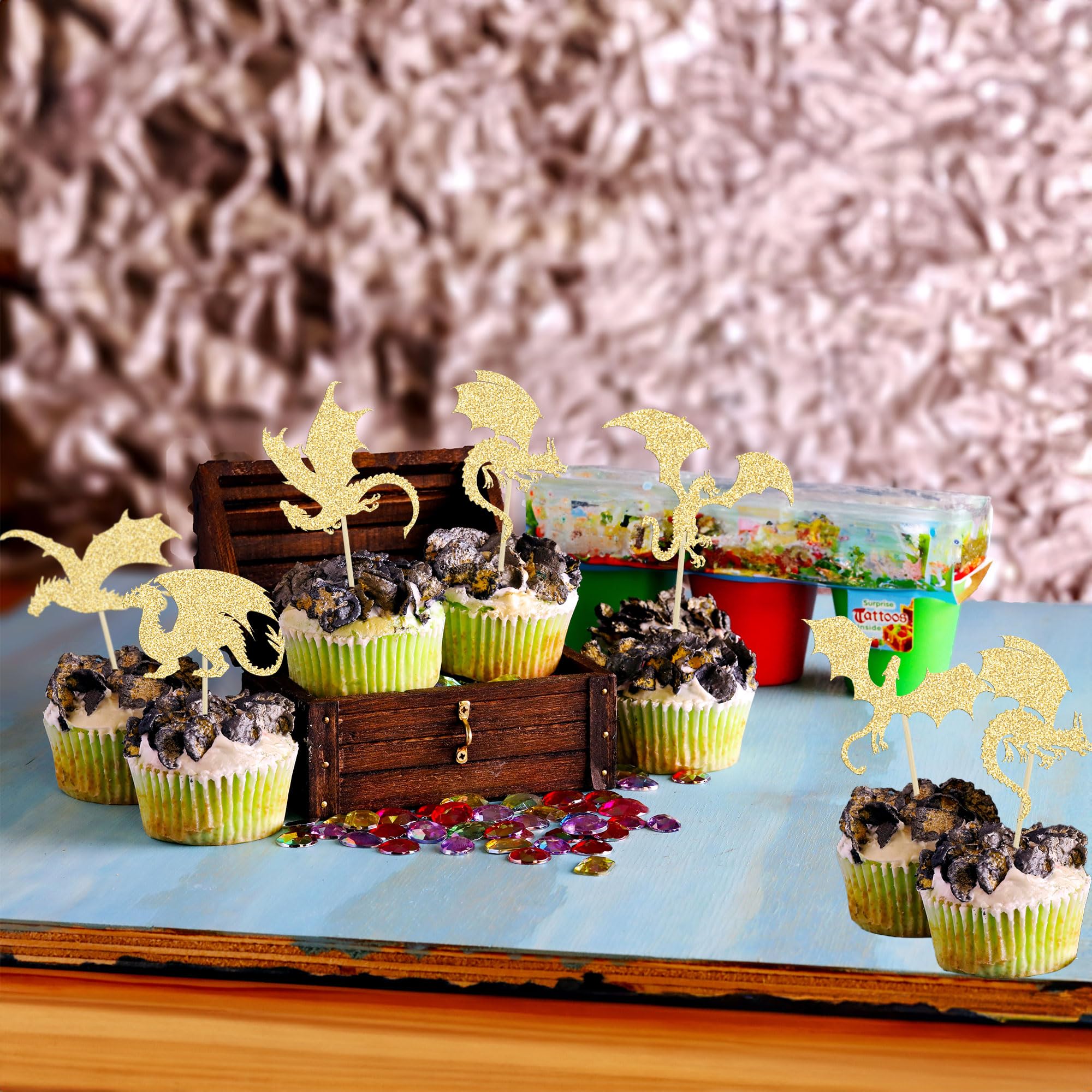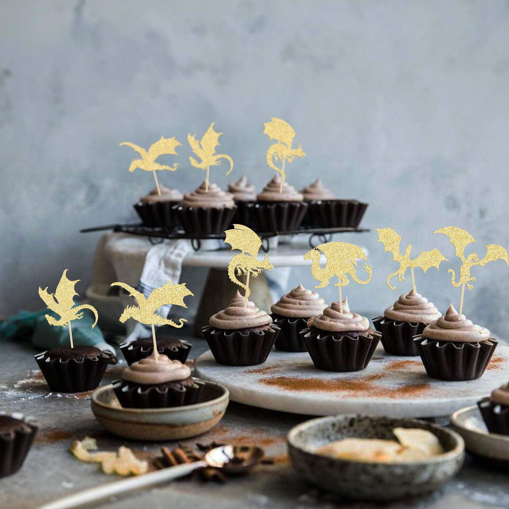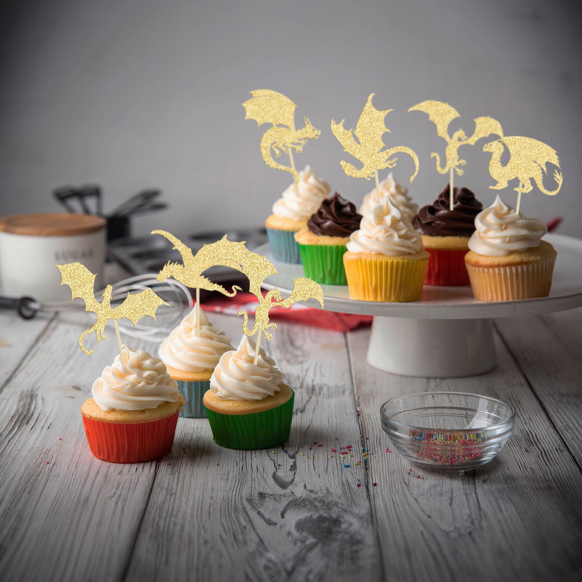 【Package Included】: 24Pcs Dragon Cupcake Toppers. These Dragon Cupcake Toppers are very nice and enough quantity for your use. Perfect for Dragon theme birthday party!