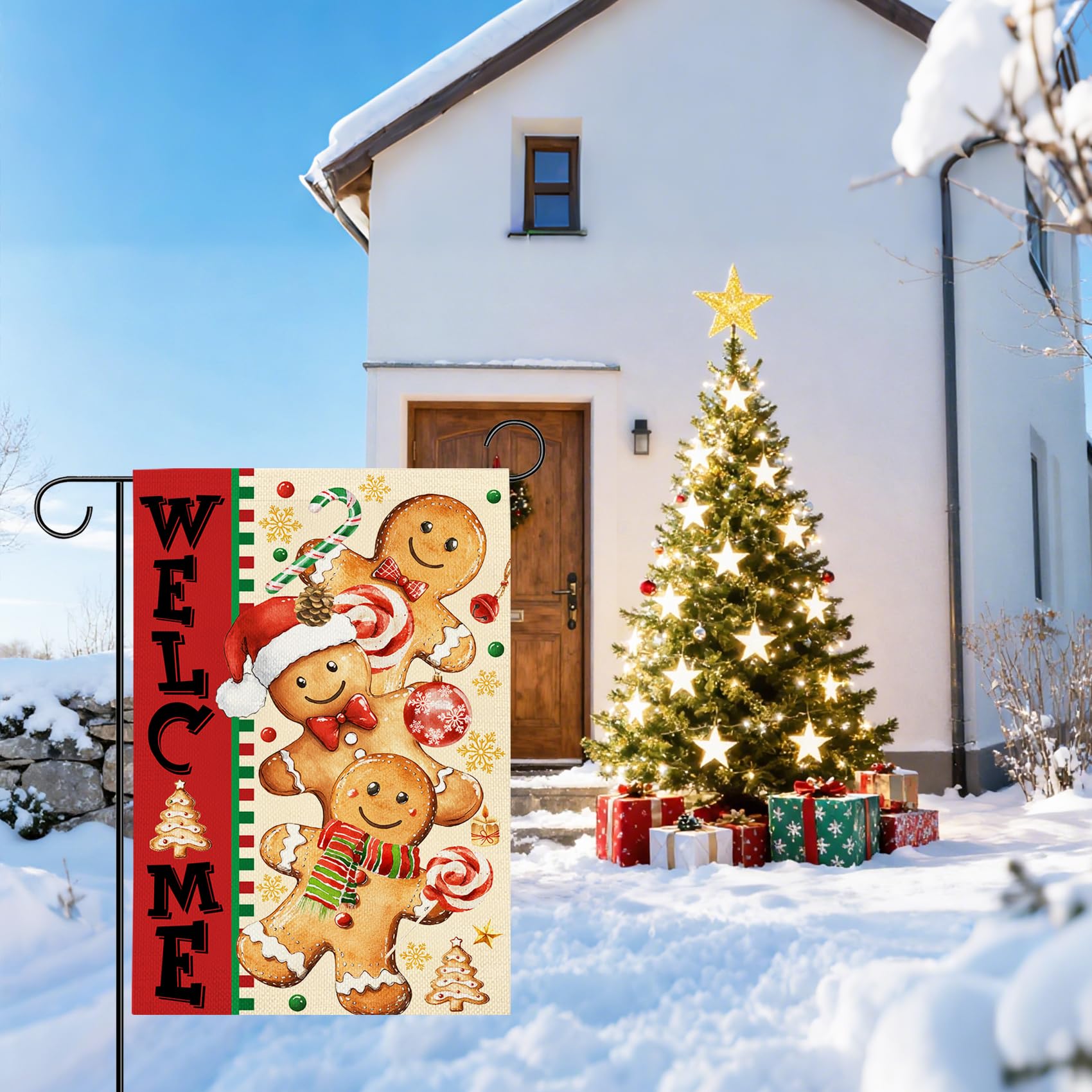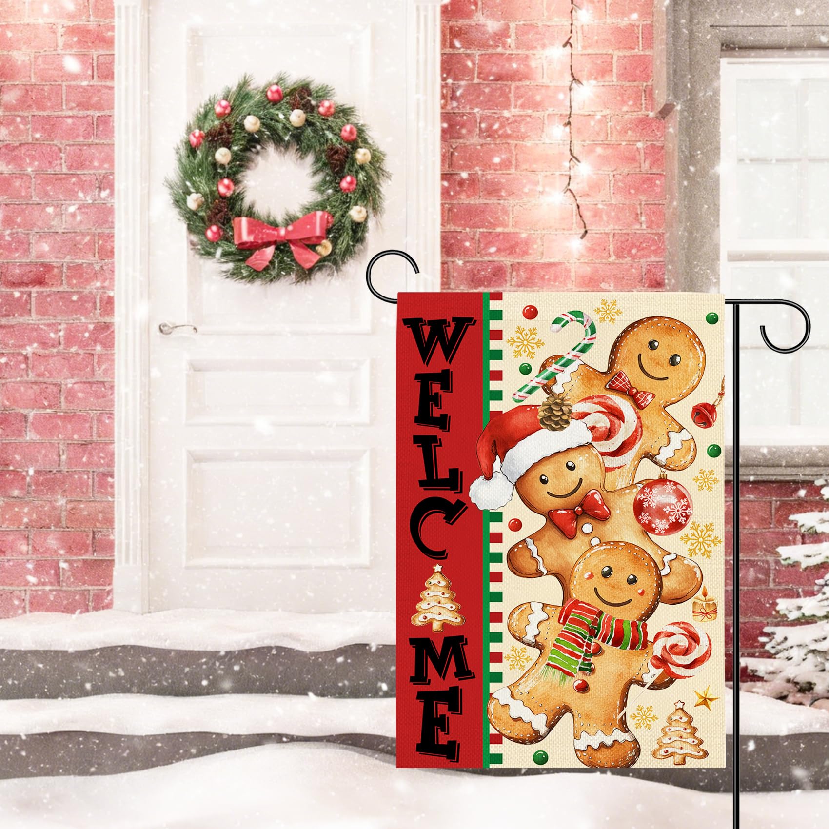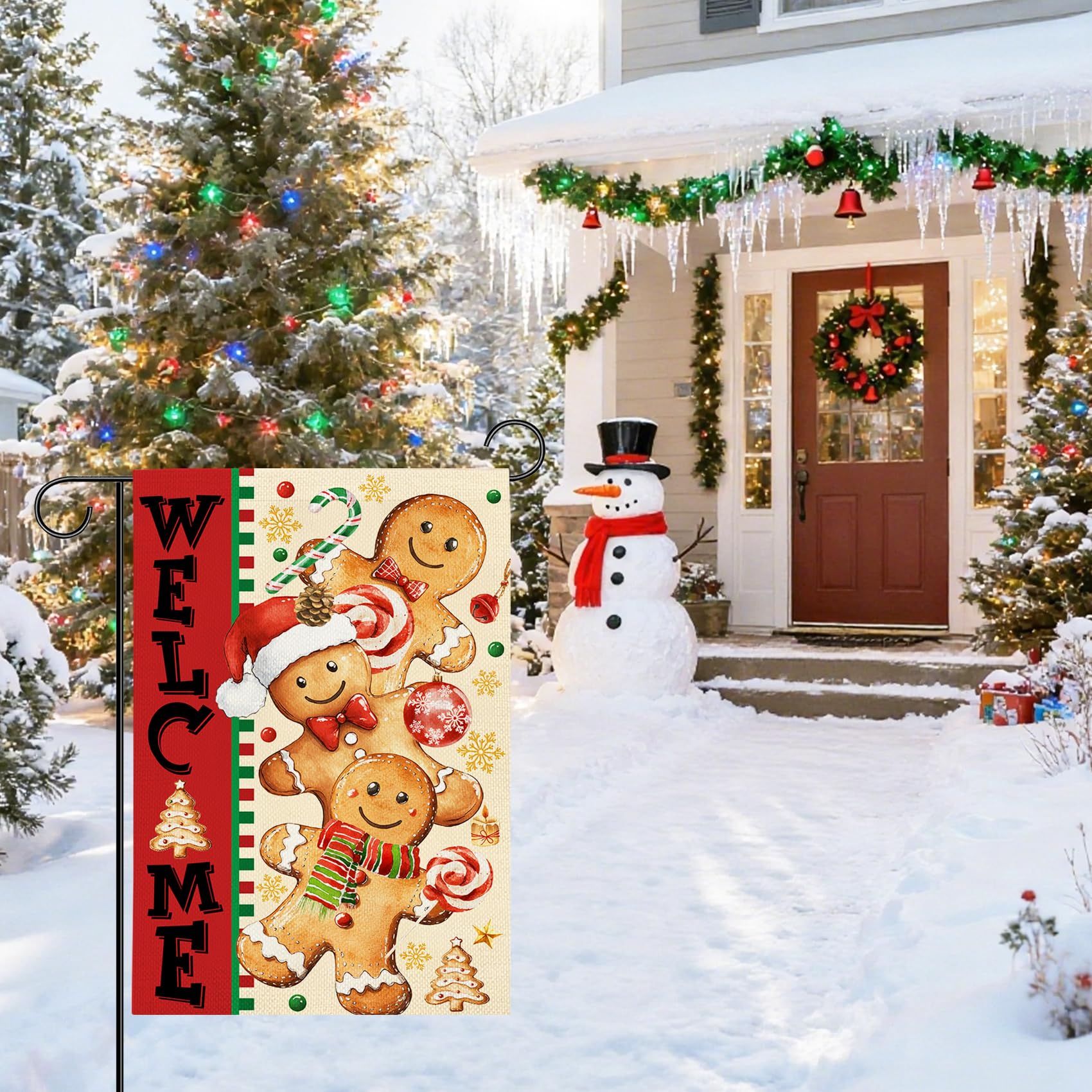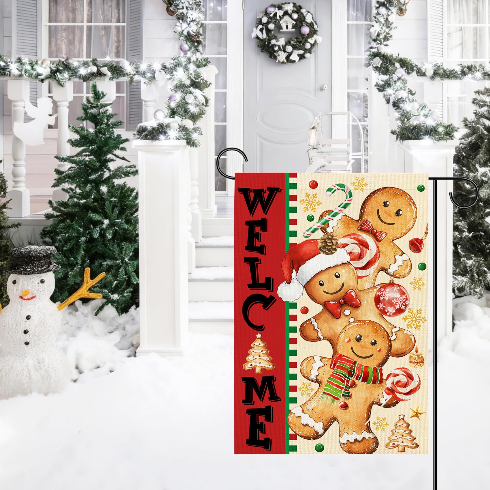 【Seasonal Yard Flag Size】: This gingerbread garden flag is 12x18 inches. Only Garden Flag, NO Flag Stand and Flag Pole. With about 2.0 inch wide hanging sleeve at the top, our garden flag fits most standard flag stands, making it ideal for gardens, patios, porches, and yards .