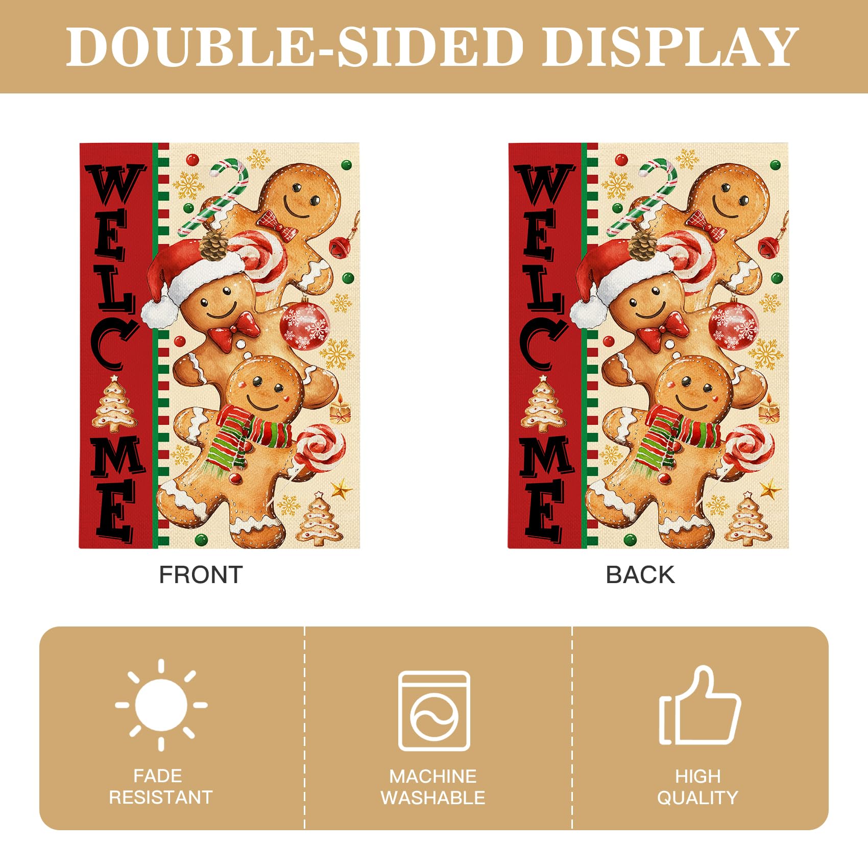 【Christmas Design Flag】: This gingerbread yard flag adopts our excellent printing technology of double-sided printing, ensuring that the image is beautiful and vivid on both side.The flag design with classical Christmas elements, vibrant, colorful and adorable, which will make your house full of Xmas holiday atmosphere when placing in yard.