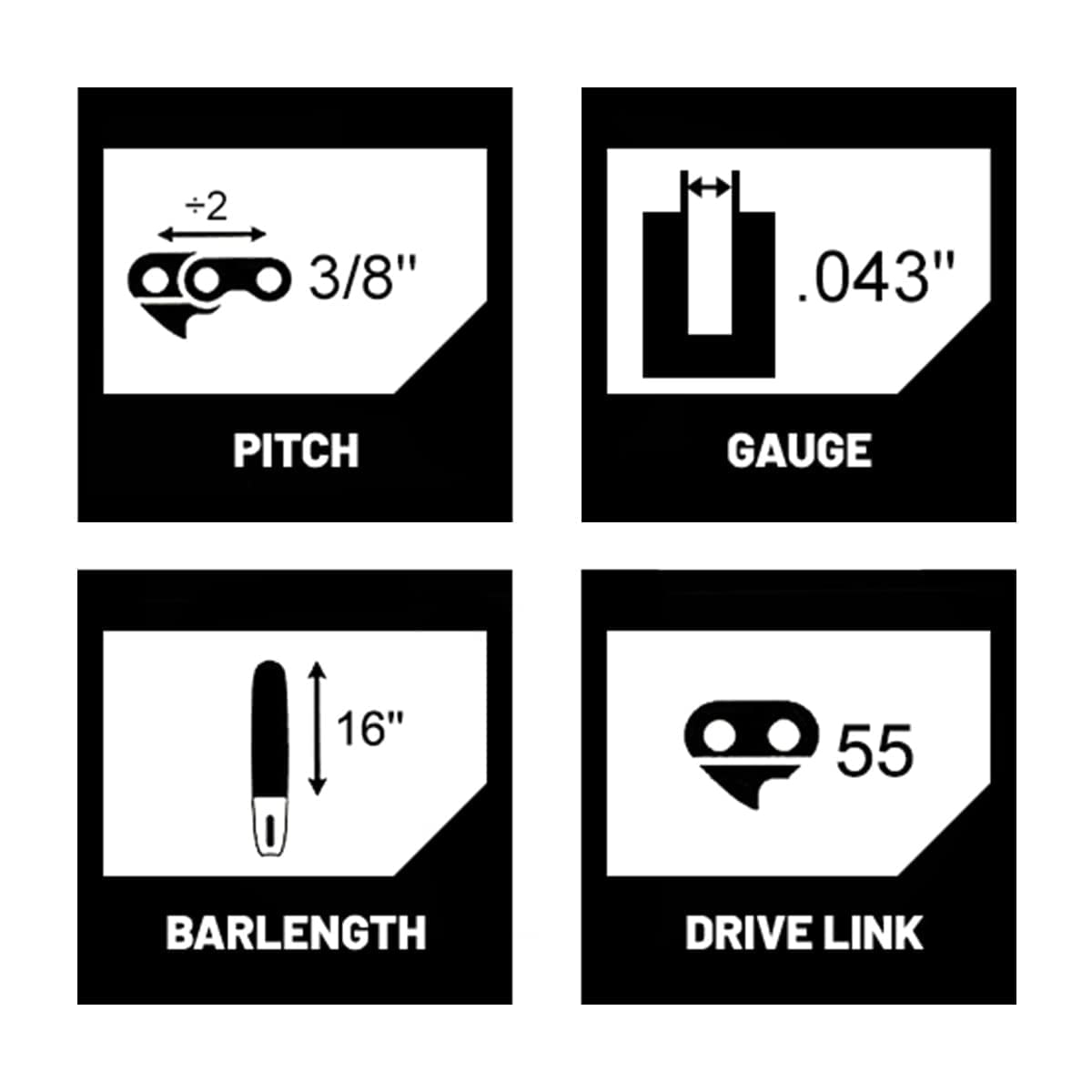 16 inch 55DL 3/8"LP .043" 2 Pack