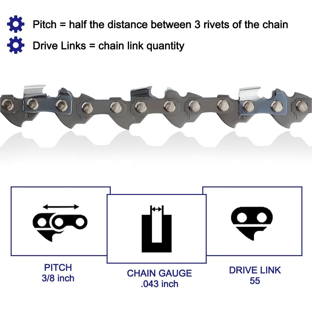 MS180C ms170 chainsaw chain Replaces Part Number : Stihl 3610 005 0055, 61 PMM3 55 ,your bar may take .043" or .050" gauge chain, verify gauge before purchasing;Please check the pitch, gauge and number of drive links before purchasing to ensure this chain will work with your machine.