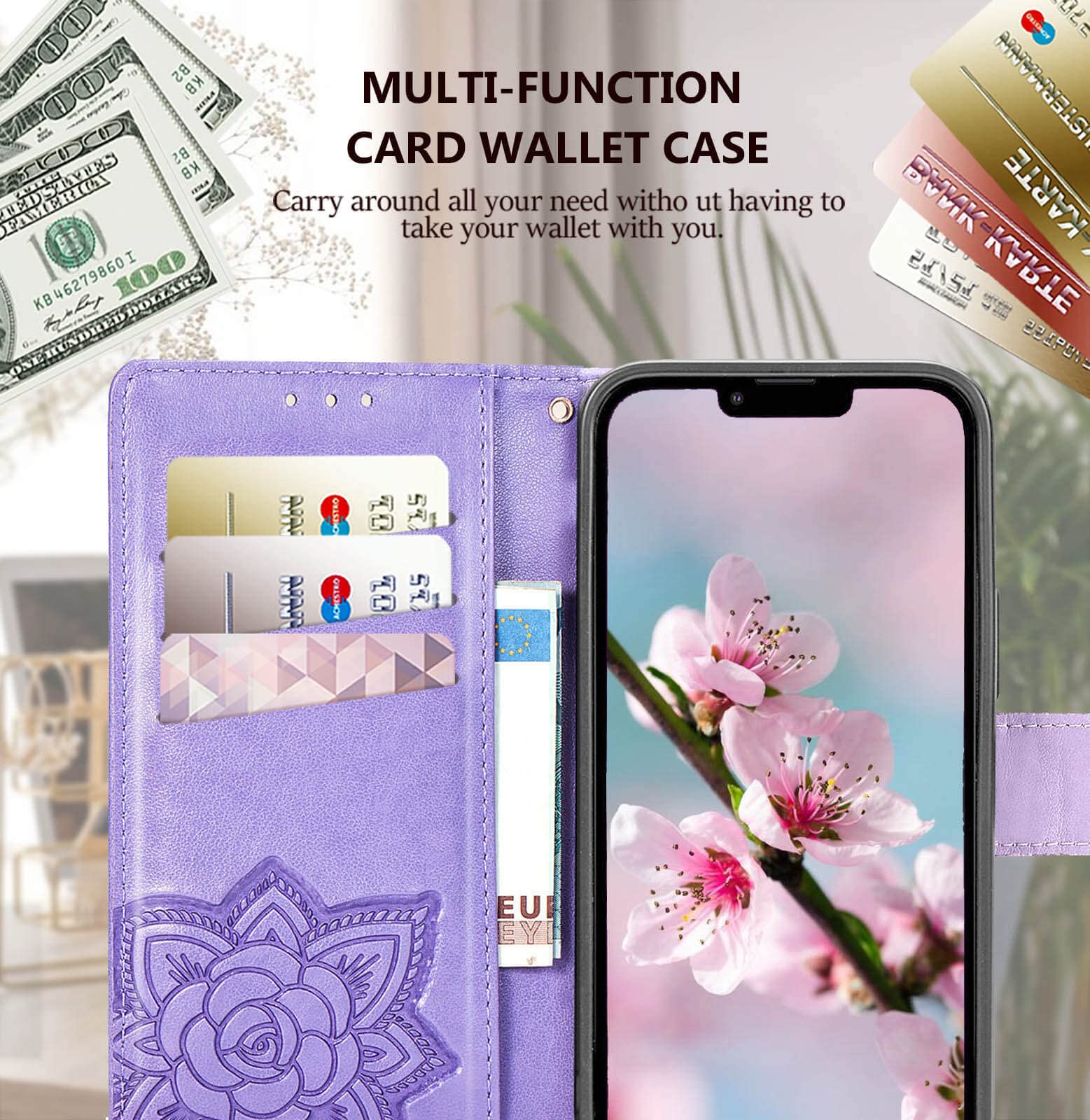 Exquisite Butterfly Pattern Design: For iPhone 13 wallet case for women with 3D emboss butterfly flowers pattern,premium leather with soft TPU interior material brings very comfortable touch feel.This folio case will bring you charm while offering protection and convenience.