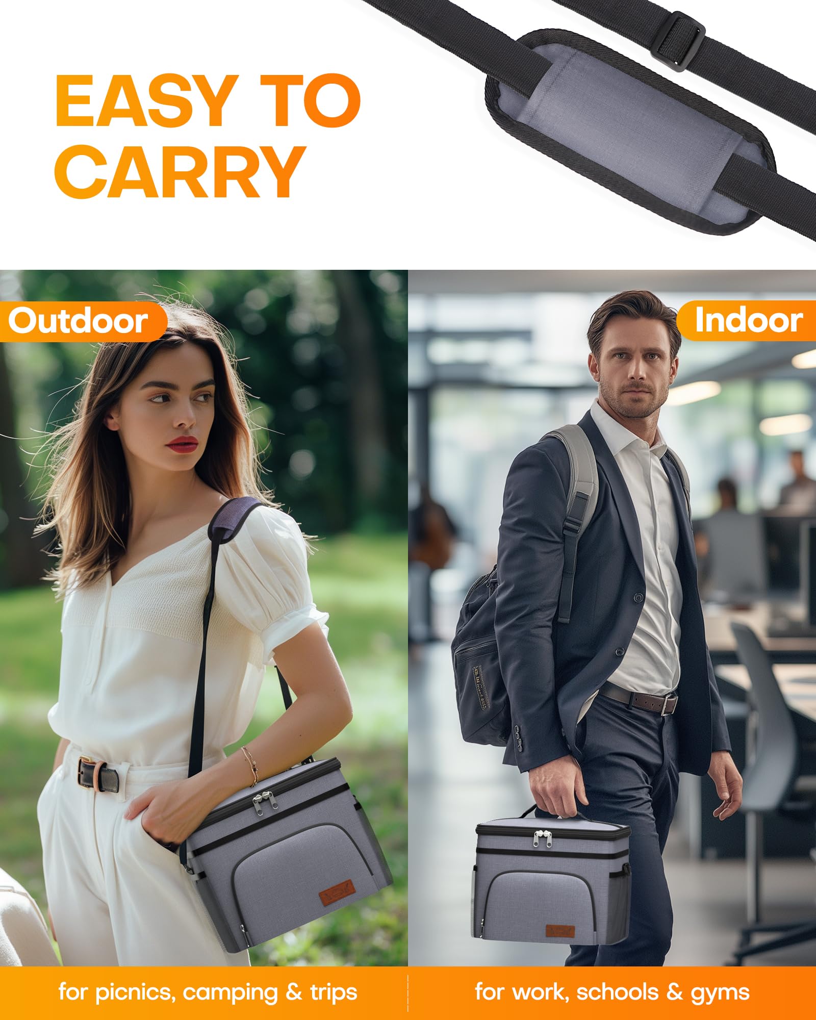 EASY TO CARRY AROUND: The HOTOR insulated lunch bag provides 2 carrying options, offering a practical and convenient solution for on-the-go use. The adjustable padded shoulder strap provides comfort during commutes or trips, and the sturdy top handle makes the bag easy to grab and go. This versatile lunch bag is ideal for work, picnics, camping, and travel.