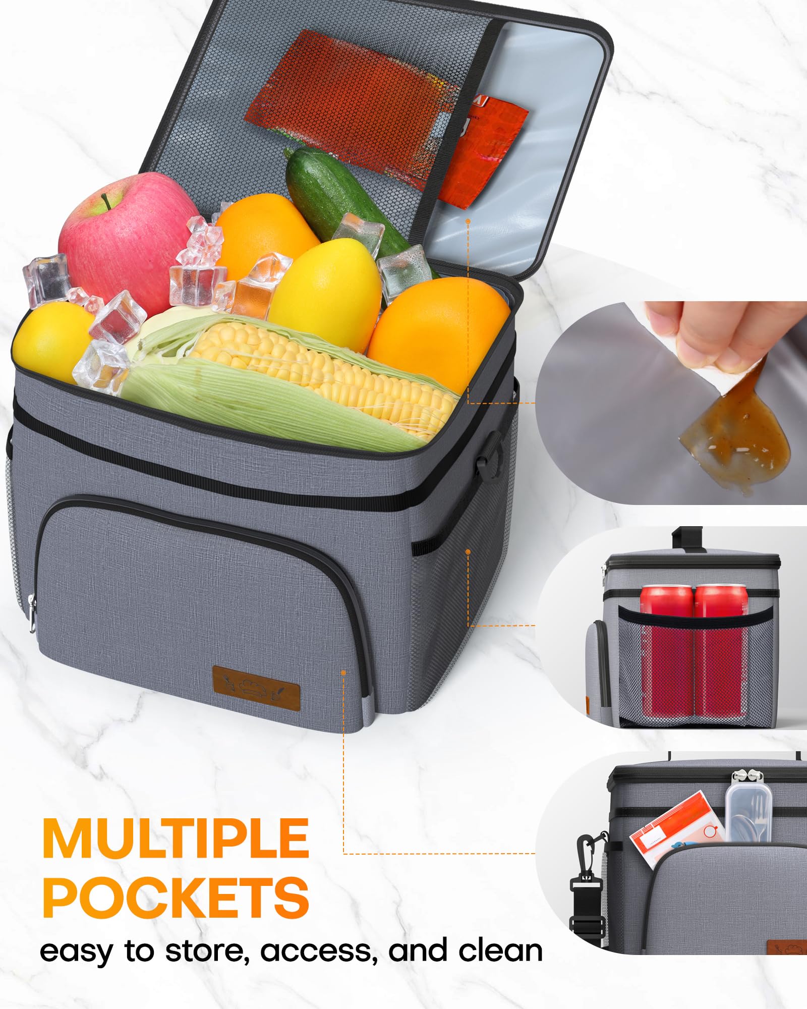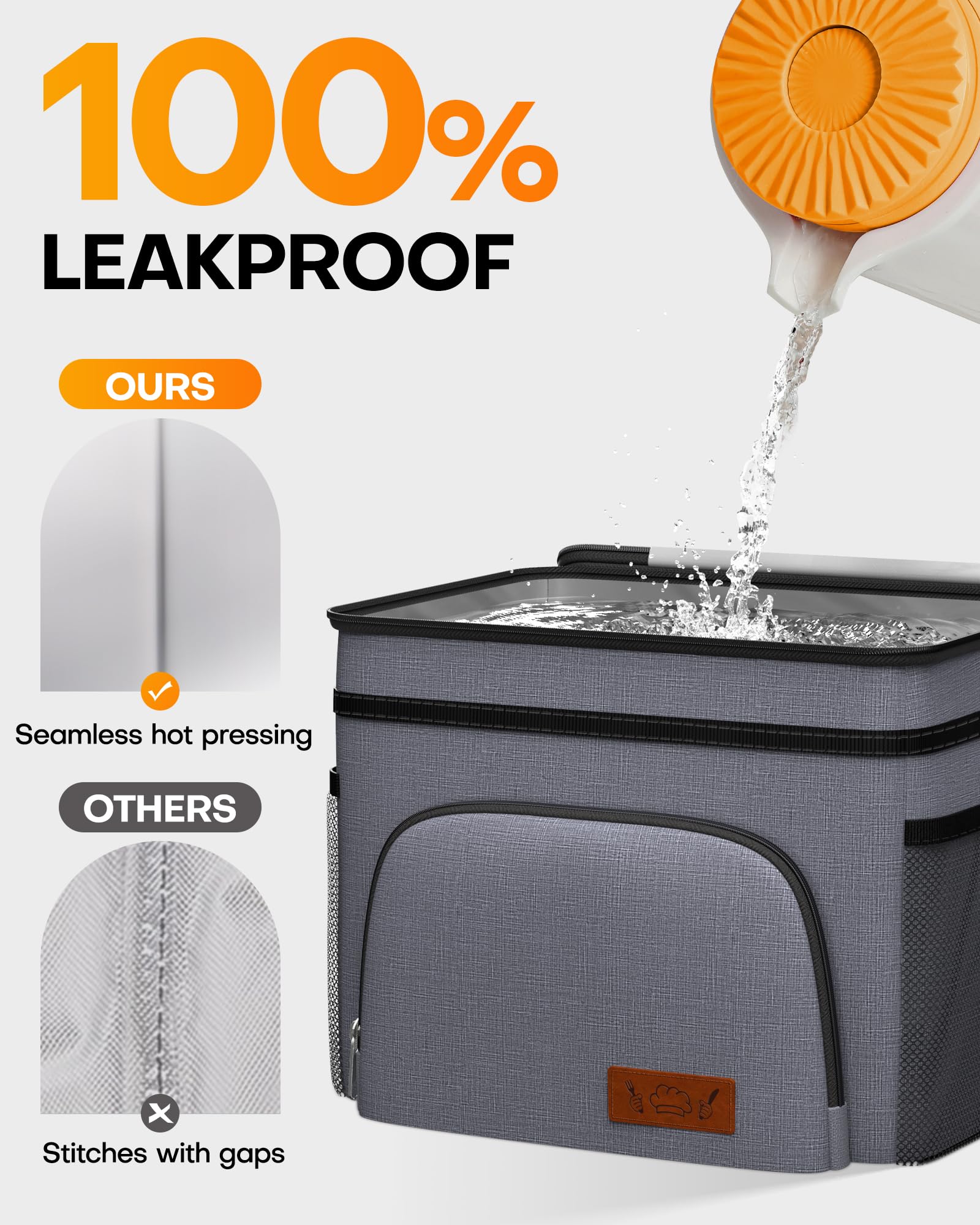 100% LEAK-PROOF: With reinforced PEVA lining and hot-pressing technology without gaps, the HOTOR insulated lunch box is 100% leak-proof, keeping the rest of your items clean and dry. Besides, you can simply wipe to clean the lining in case of any accidental spills. Whether it's soup, sauce, or a chilled drink, carry your food with confidence.
