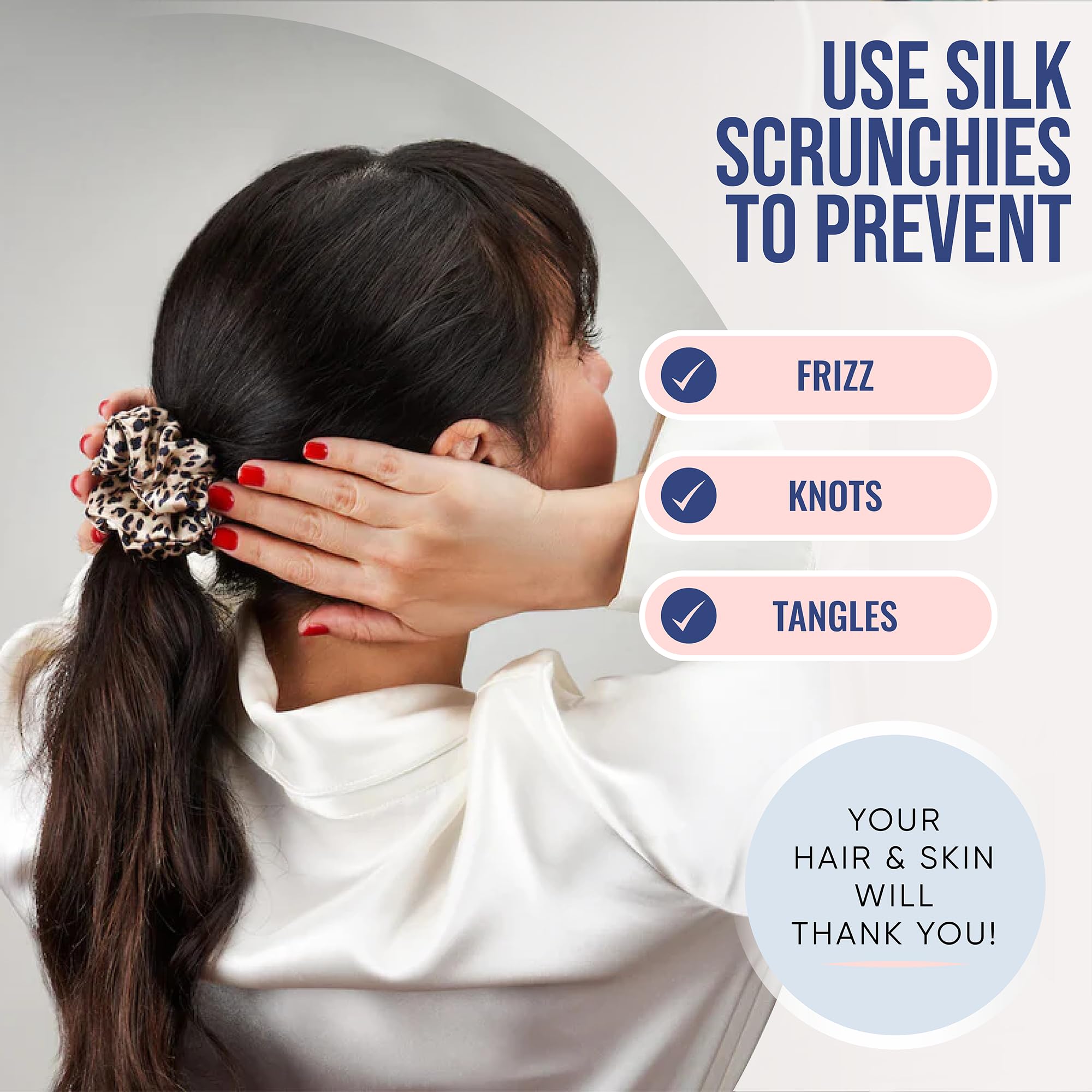 Elegant Style: These chic silk hair scrunchies add a touch of elegance to any hairstyle. Perfect for a variety of occasions, they complement both casual looks and evening styles, ensuring your hair stays stylishly in place.