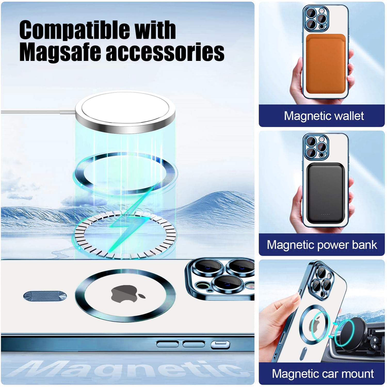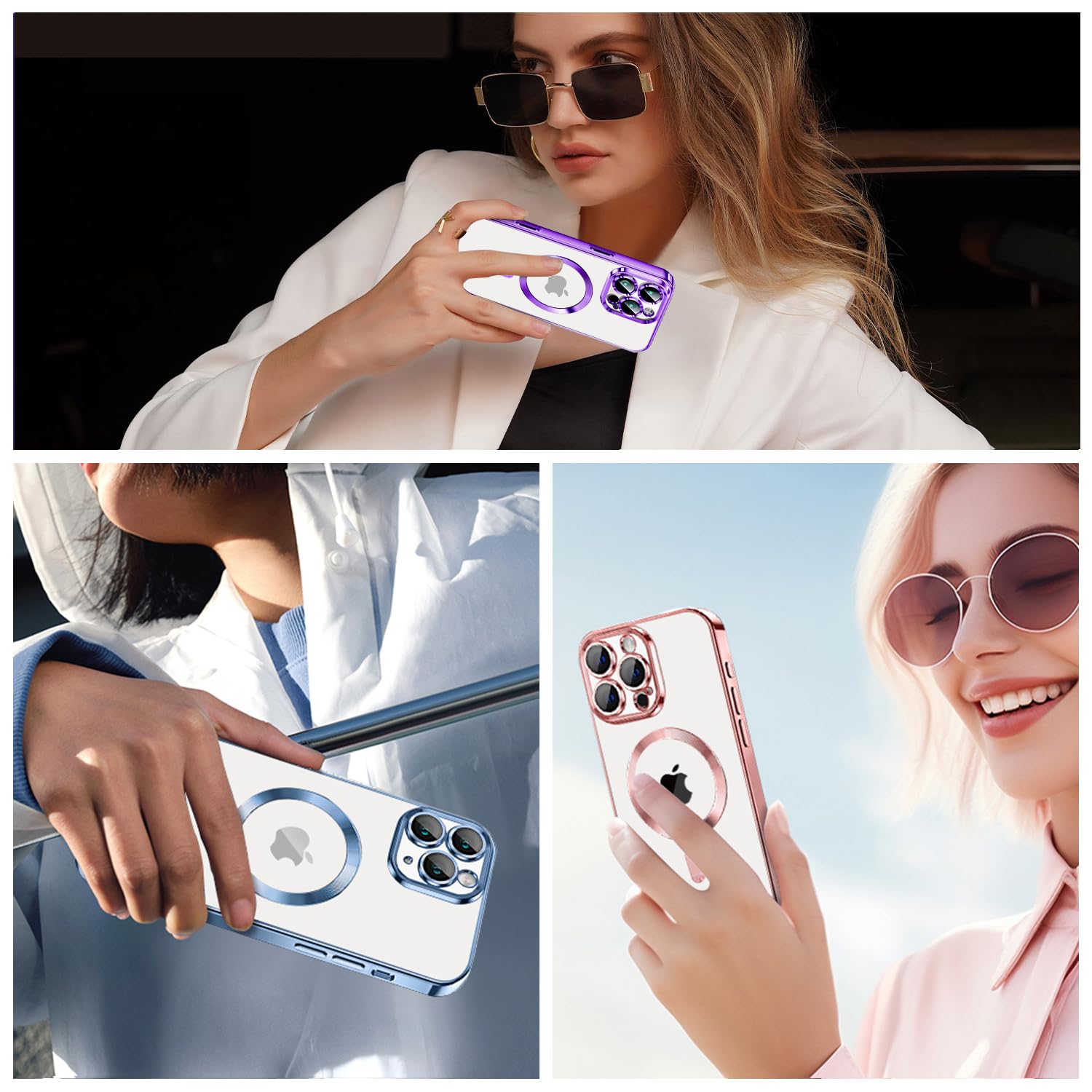【Fashionable and Magnetic Strips Design】Luxury electroplate plating edge,makes mobile phone Special, Lovely, Fashion,Cool,and the built-in magnetic ring can strengthen the MagSafe connection to be compatible with all MagSafe accessories and supports high-speed wireless charging.