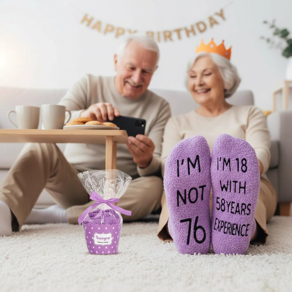 GIFTS FOR HER: Say it with socks - "I'M NOT 76, I'M 18 WITH 58 YEARS EXPERIENCE." These are suitable for any holiday gifts, such as Birthday gifts, White Elephant gifts, Christmas gifts.