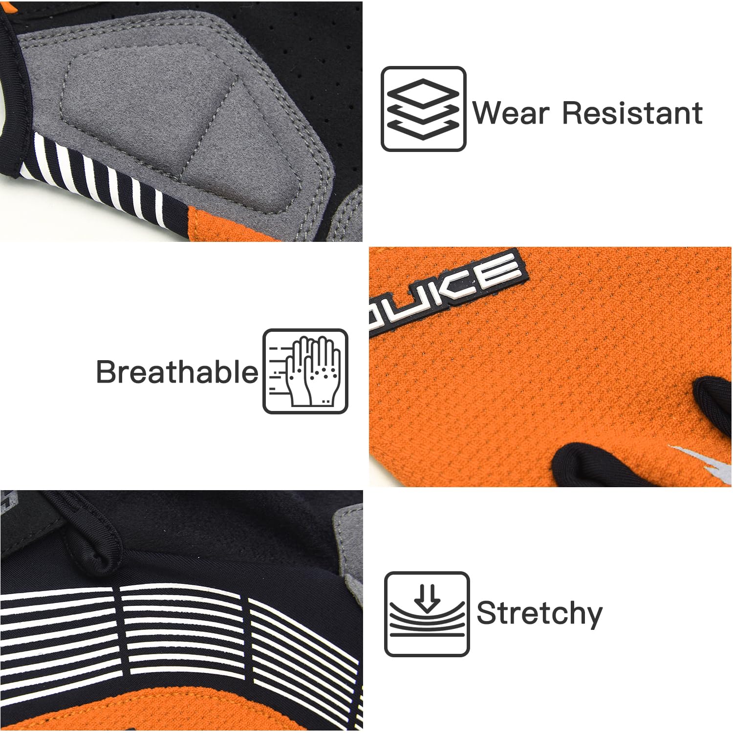 Anti-slip and Anti-abrasion: The mountain bike gloves are perfect for providing better grip on the handlebar in damp or sweaty conditions. Synthetic palm is made from a thin microfibre to combine durability with exceptional grip and comfort. Additionally, double-stitched seams provide increased durability for season of hard use and frequent washing.