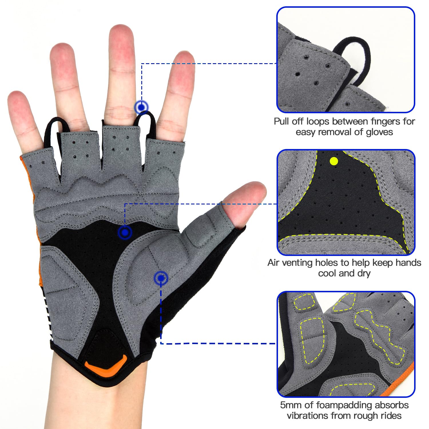 Anatomic Fit and Excellent Protection: The cycling gloves for men are equipped with 5mm(0.5in) rebound foam padding in the palms to offer shock absorption and impact resistance, reducing fatigue to help you perform longer. This bicycle glove features optimized padding that delivers exceptional ergonomic design and high-quality construction to eliminat the bulky feel and allow your hands to move naturally for enhanced control.