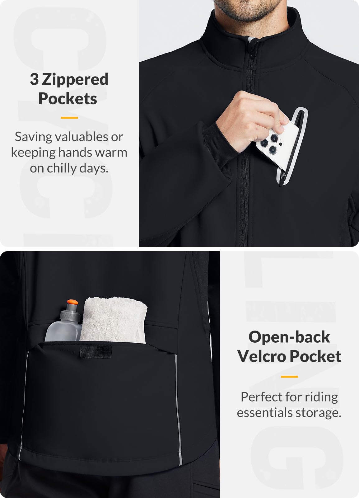 Carry More: Two side zipper pockets and an open-back velcro pocket perfect for riding essentials storage, one zippered chest pocket for valuables. They are roomy and well positioned, so access is easy when in the saddle.