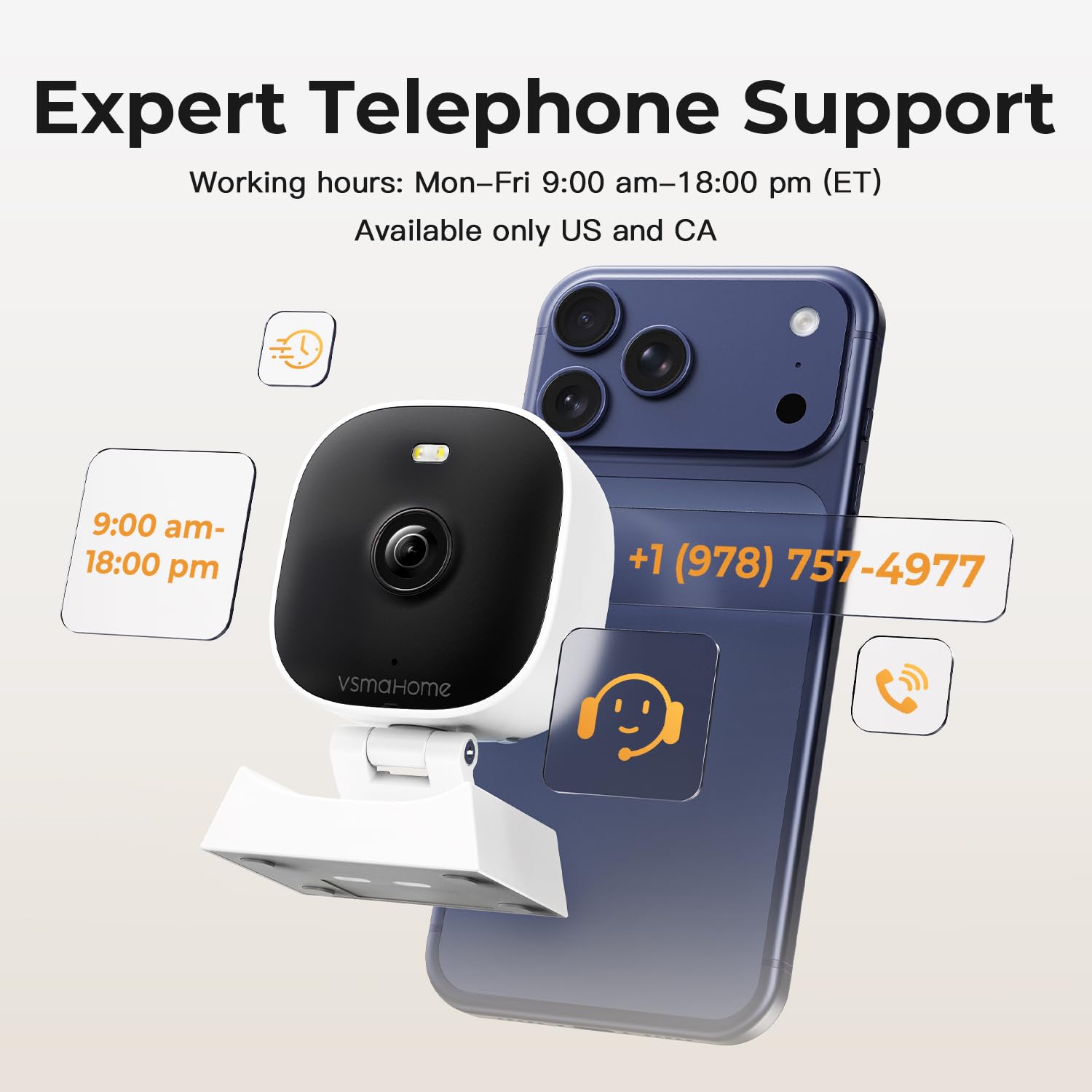 【2K HD & Color Night Vision】Whether you’re watching pets play by day or clearly distinguishing if backyard movement is a cat or a stranger under moonlight, these 2k cameras for home security deliver ultra-clear 2K resolution and full-color night vision. Both our indoor cameras for home security and outdoor home surveillance cameras capture every critical detail—no blur, no missed moments. Need help with your camera for home security? Call +1(978)757-4977 for professional consulting to set up and optimize your VSMAHOME camera. Note: Working hours: Mon-Fri 9:00 am-18:00 pm (ET)