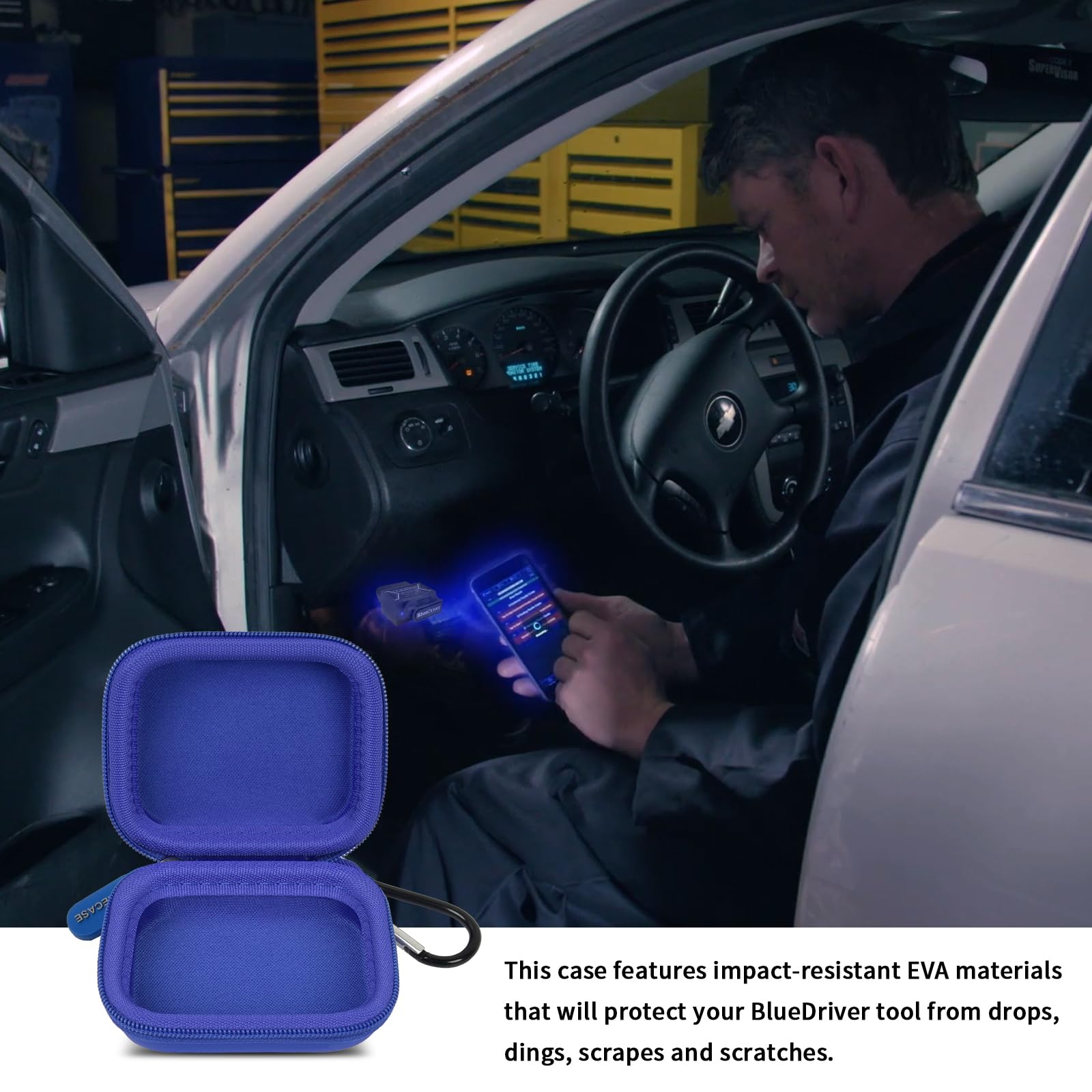 Auto Scanner Case Perfect Fit: This mini code readers & scan tools carrying case is perfect for BlueDriver Bluetooth Pro OBDII OBD2 LSB2 Scan Tool for iPhone & Android, Veepeak OBDCheck BLE OBD2 Bluetooth Scanner Auto OBD II Diagnostic Scan Tool, Dimension: 3.14 x 2.56 x 1.6 inches.