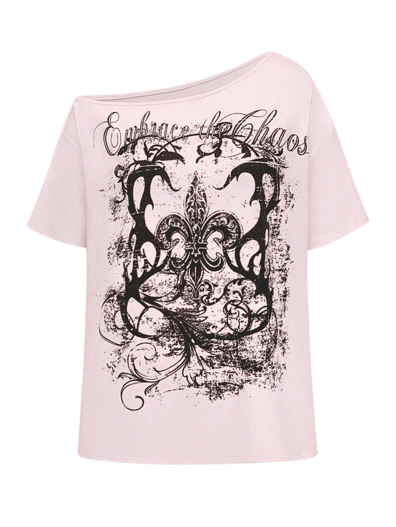 Features: graphic print, halfsleeve, boat neck, drop shoulder, goth tee shirts, y2k trendy tee tops