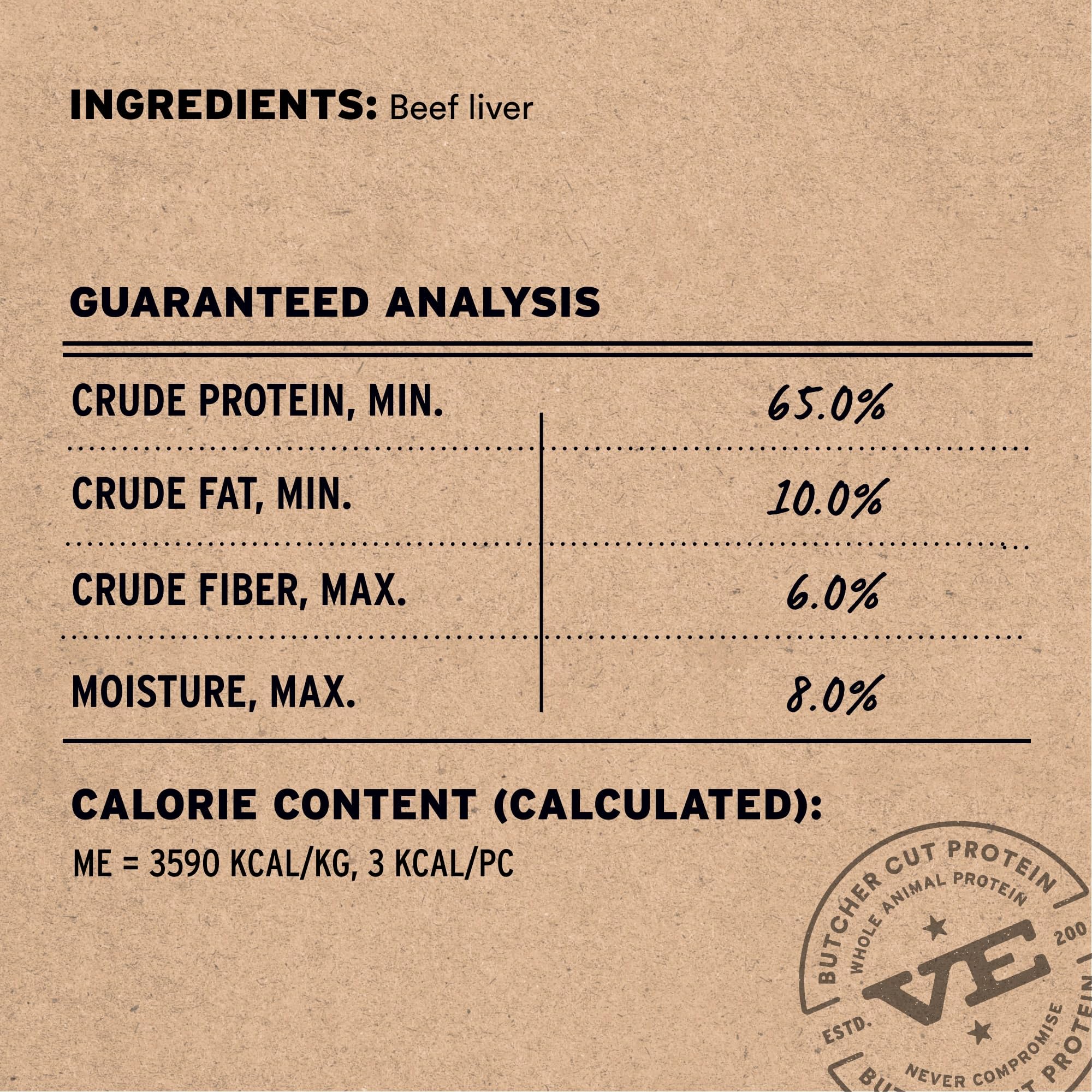 FREEZE-DRIED RAW BEEF LIVER DOG TREAT: Vital Essentials Freeze Dried Dog Treats pack more protein than industry standard into every bite to deliver the peak vitality your dog deserves. Our natural freeze-dried raw dog treats are made from responsibly sourced, premium butcher cut beef liver.