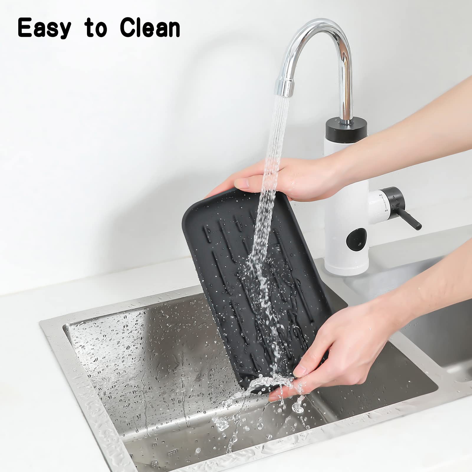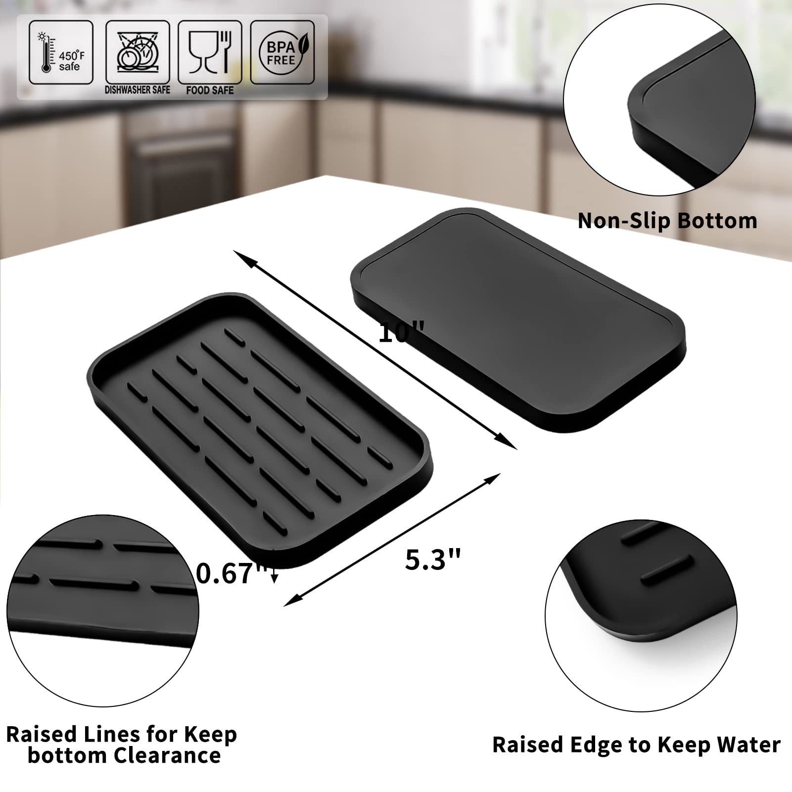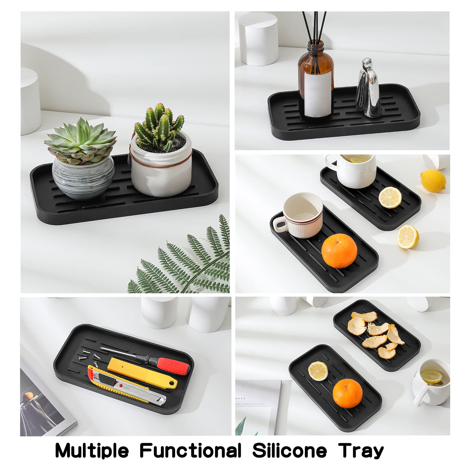 RAISED EDGE & NON-SLIP BOTTOM:The non-slip bottom design can make the silicone organizer tray stable on the sink or countertop.The 0.67-inch high raised edge keeps water or other dirt overflow to keep your counter clean.