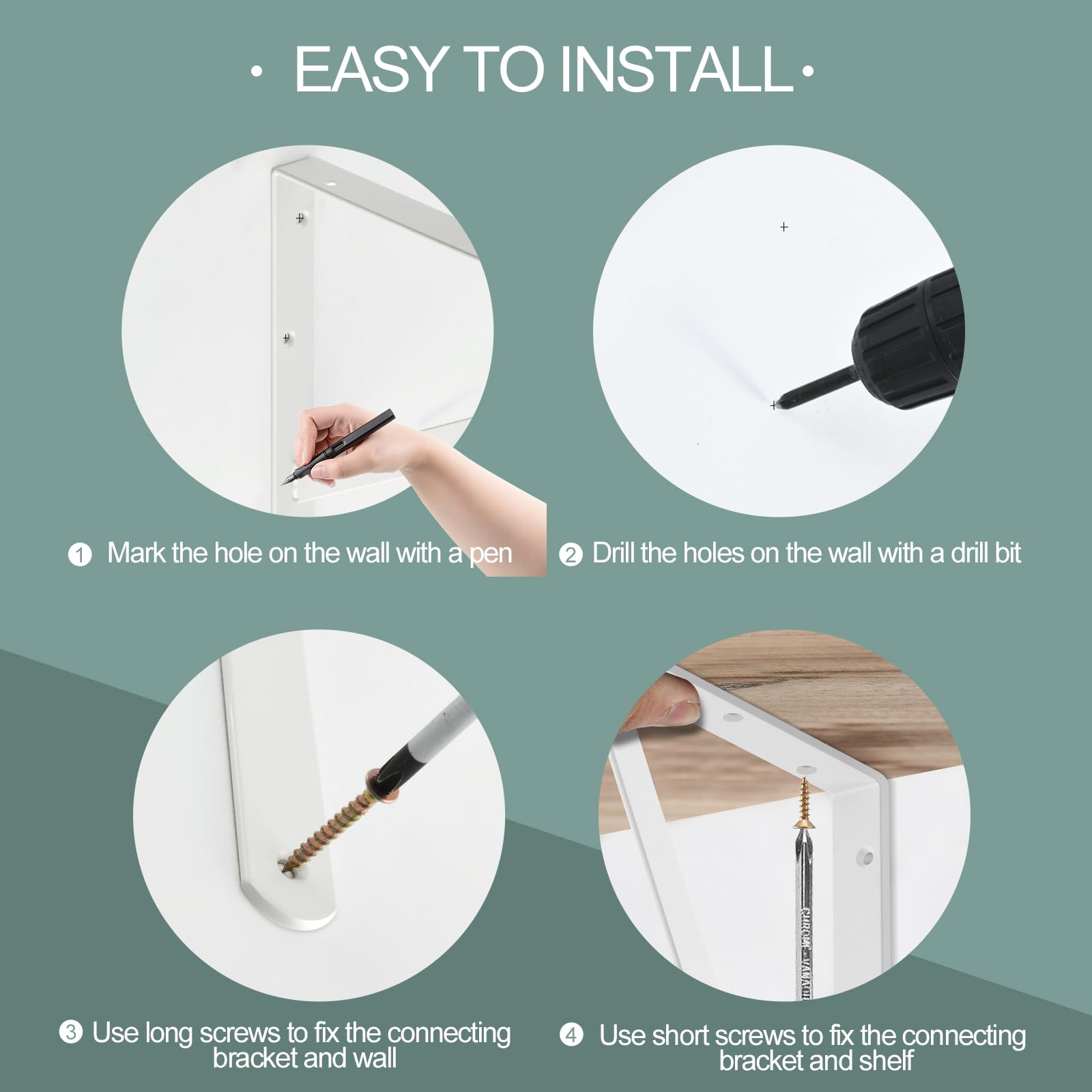 Easy to Install design using basic DIY Tools. Easily mount your favorite shelves in your home office, bathroom, kitchen, living room, dining room, bedroom, garage