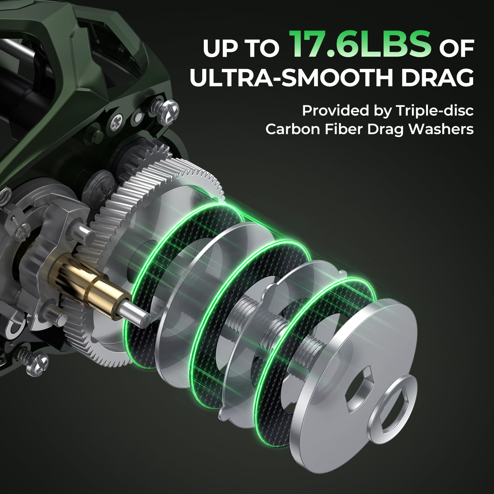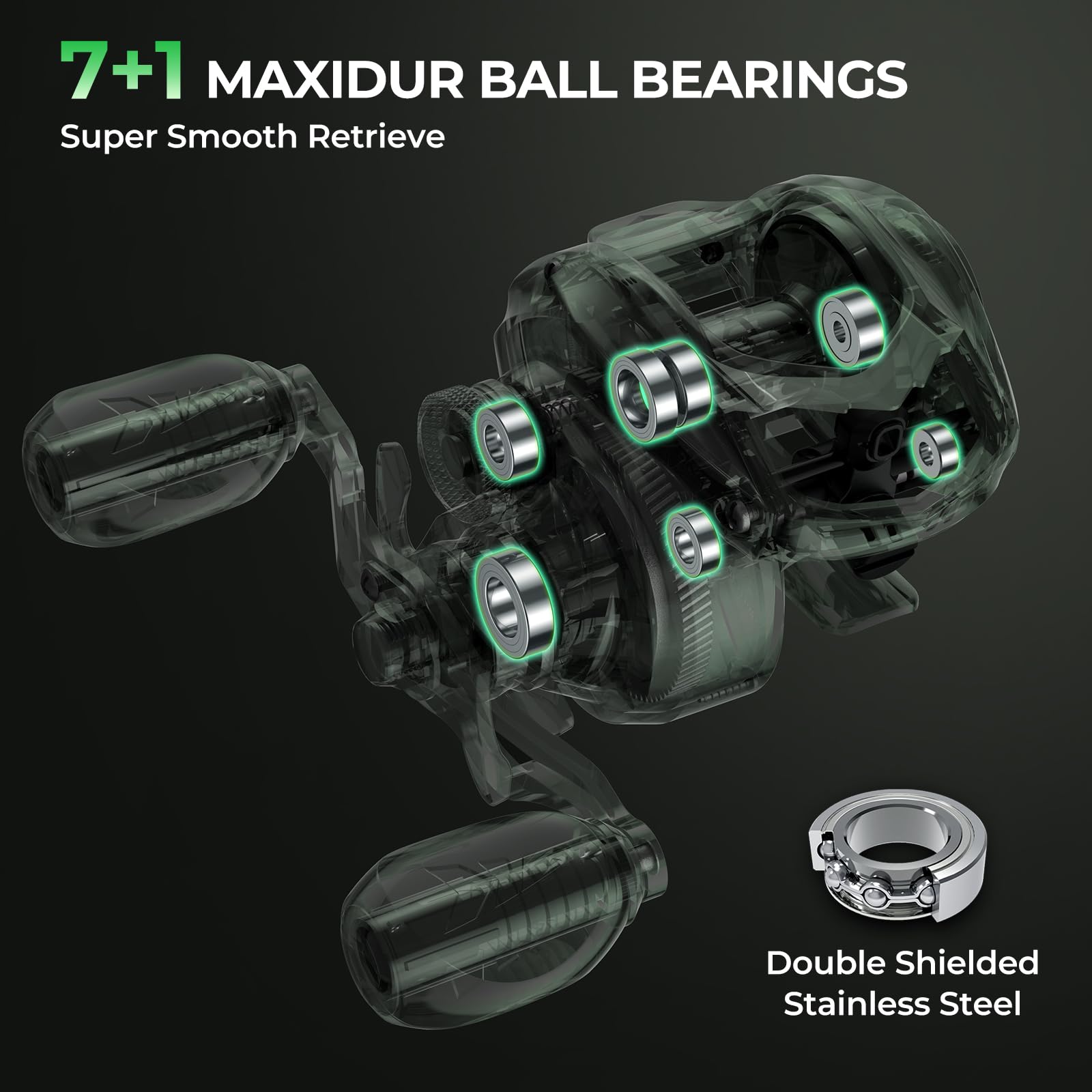 Refined Casting Reel – The KastKing Spartacus II casting reel is built for ultra-smooth casting and retrieval with its 7+1 MaxiDur bearing system. With 17.6 pounds max drag, it handles big catches with ease, while the 7.2:1 gear ratio provides faster line retrieval. Constructed with aerospace aluminum main gears and brass pinion gears, making the KastKing fishing rod and reel combo an excellent choice for anglers in all fishing conditions.