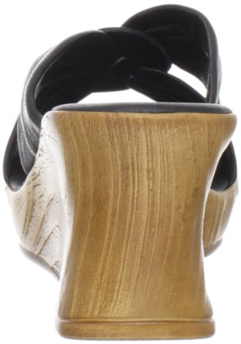 Wood-look wedge sandal with crisscross leather straps and padded footbed