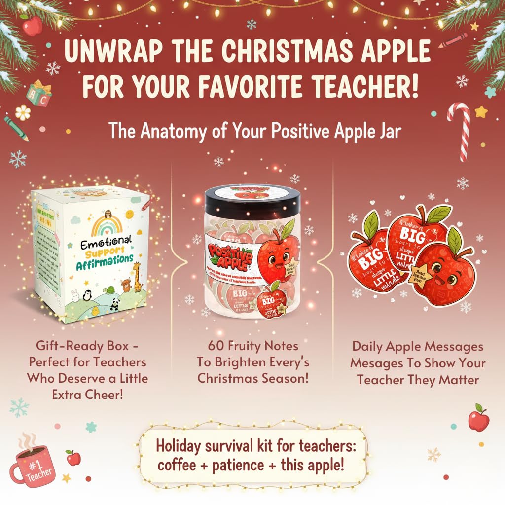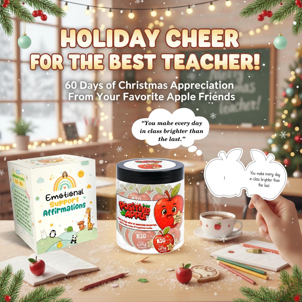 Brighten your day with the Positive Apple Jar, a cheerful collection of 60 uplifting affirmation cards designed to bring daily encouragement, emotional support, and stress relief. Each apple-themed card features playful illustrations inspired by apple gift card designs, creating a charming mix of motivation and fun. Whether used as office decor, Halloween decor, or a thoughtful thank you card alternative, this jar adds positivity to any space. Perfect for teacher supplies, teen girl gifts trendy stuff, birthday gifts for women friendship, or funny gifts for men—this little apple delivers big smiles, one card at a time.