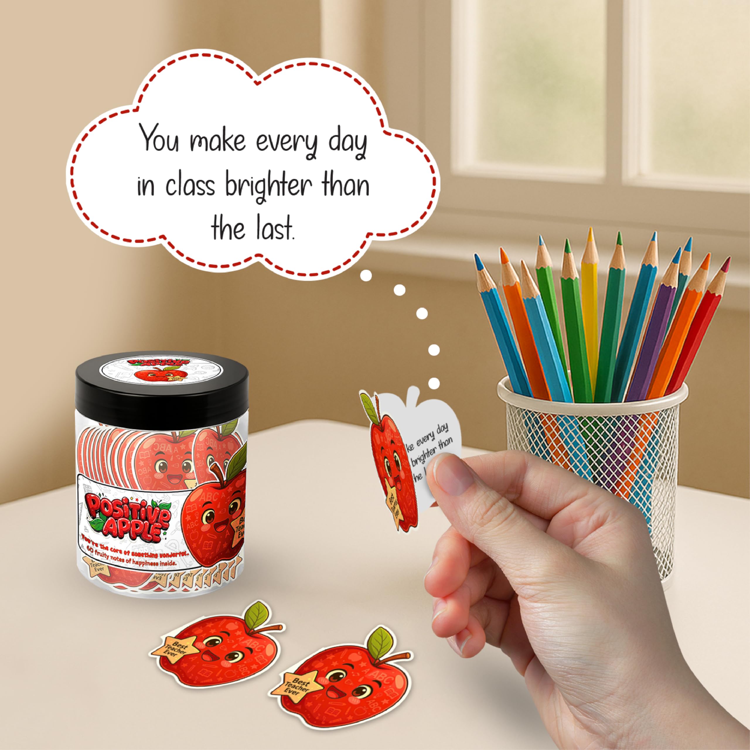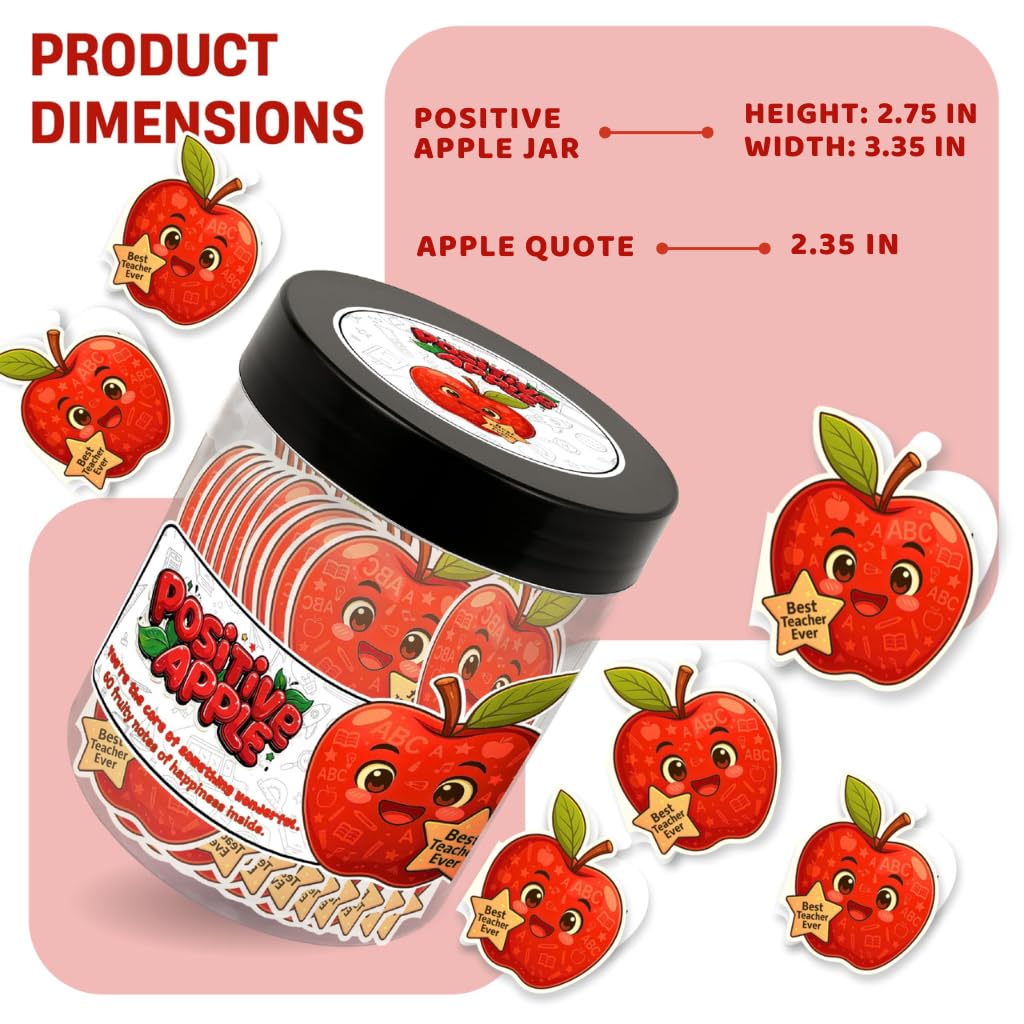 ✨ Cute Apple-Themed Designs Each apple card features bright, cheerful illustrations inspired by apple gift card aesthetics, making this jar a fun apple decor item for office decor or teacher supplies.